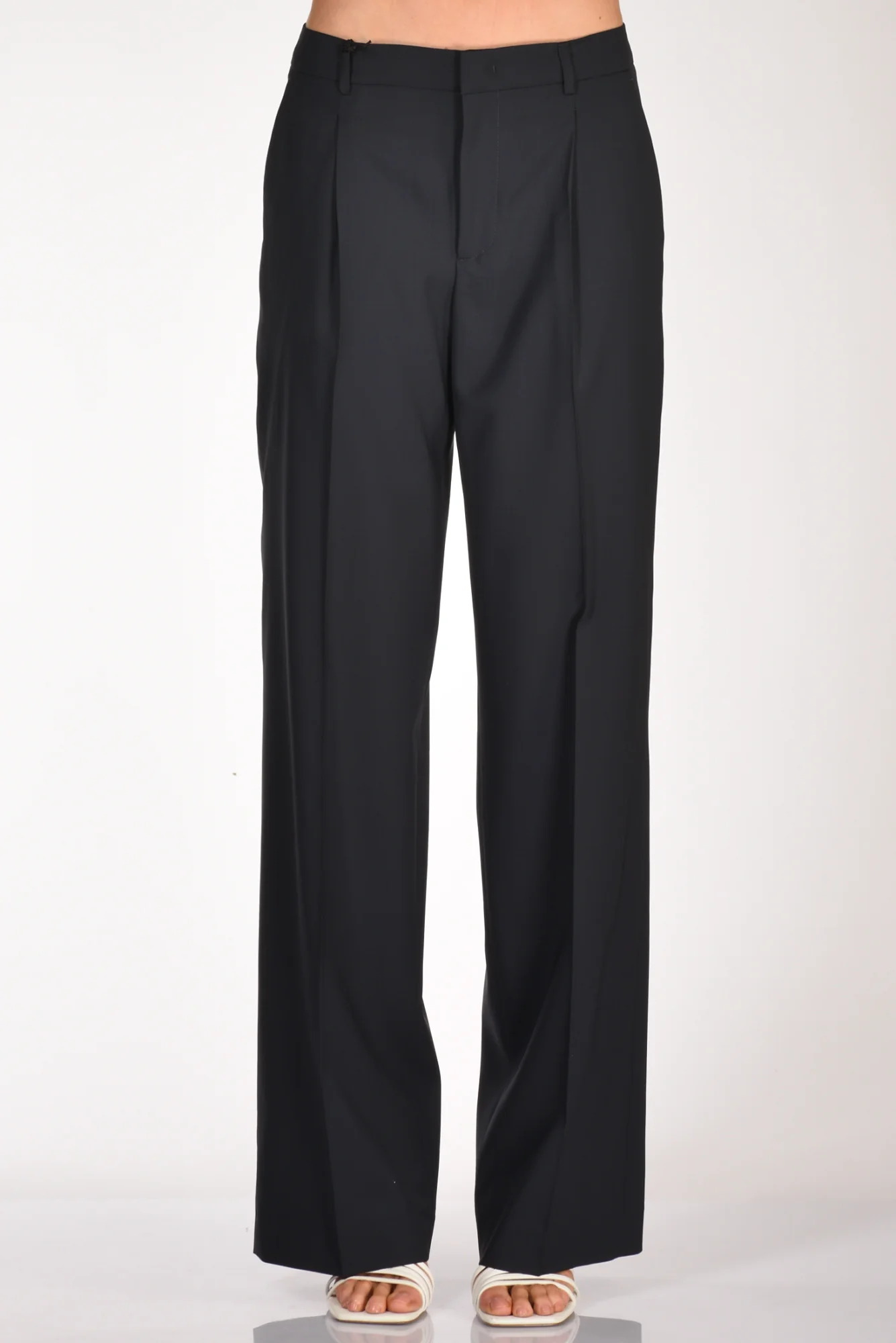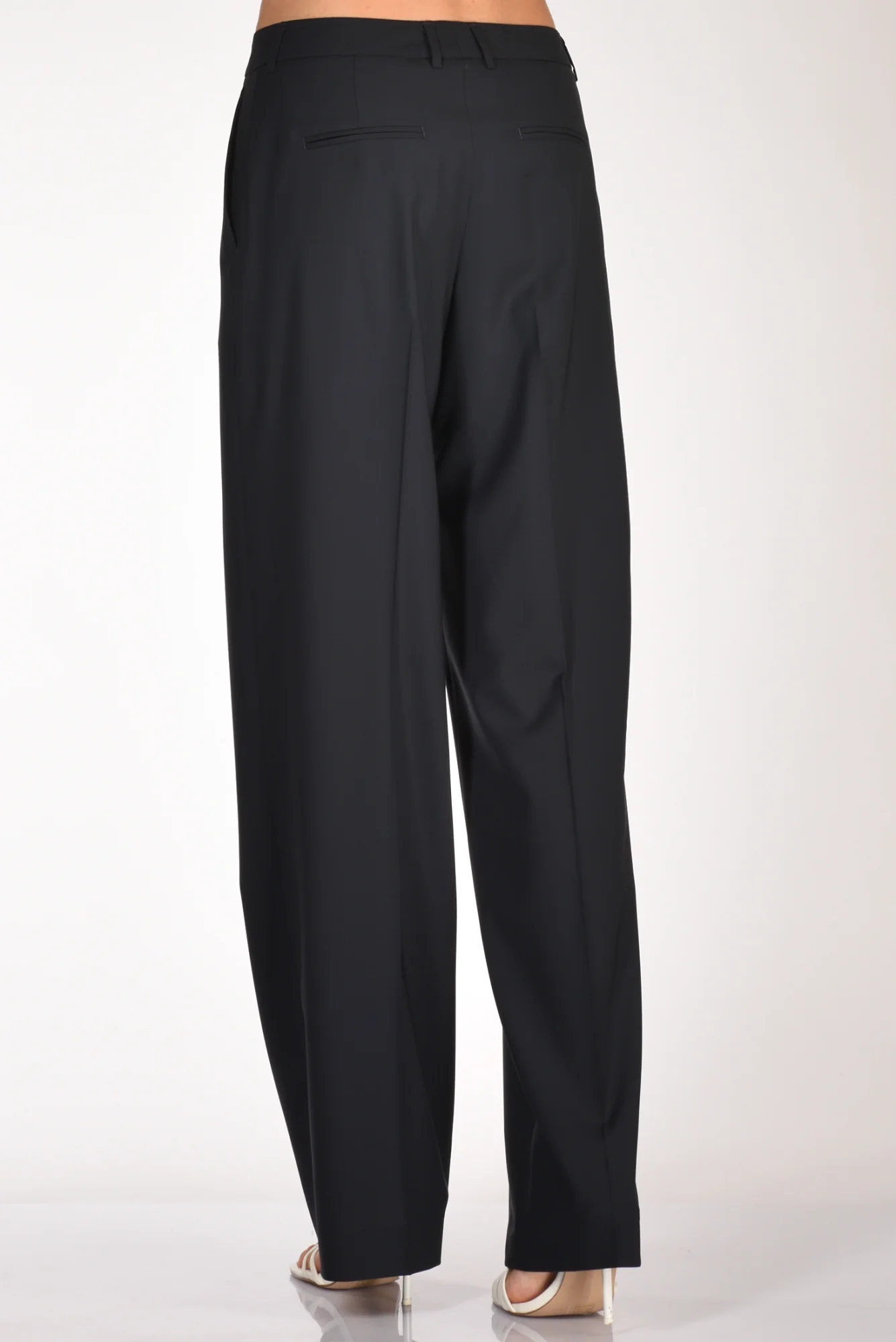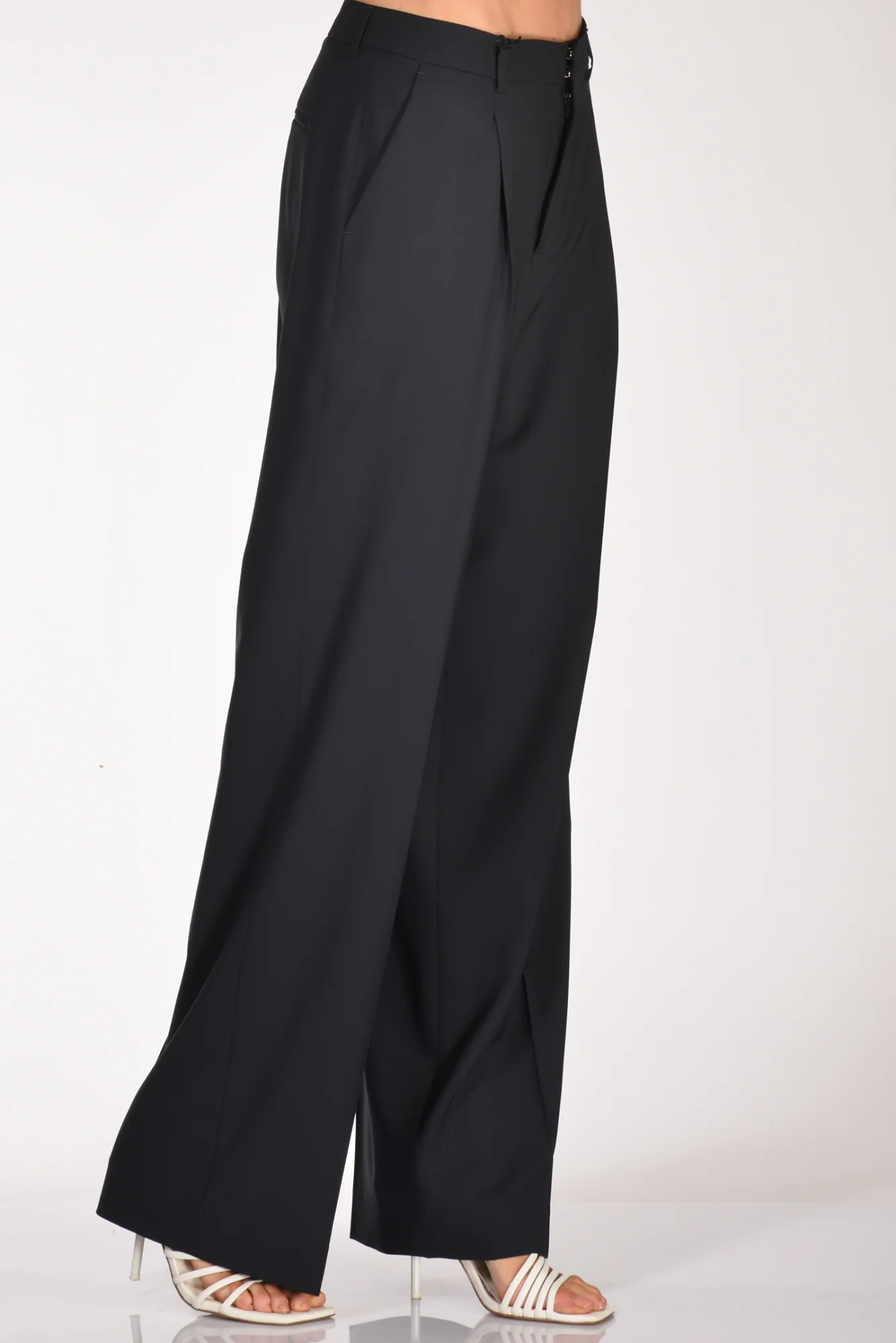 Pantaloni Gamba Larga, Vita Alta, Pences Frontale, Passanti In Vita, Tasche Laterali Inserite E Posteriori A Filetto, Chiusi Da Zip, Bottone E Gancio Metallico Nascosti, Vestibilita’ Regular, Composizione 100 Lana, Made In Italy