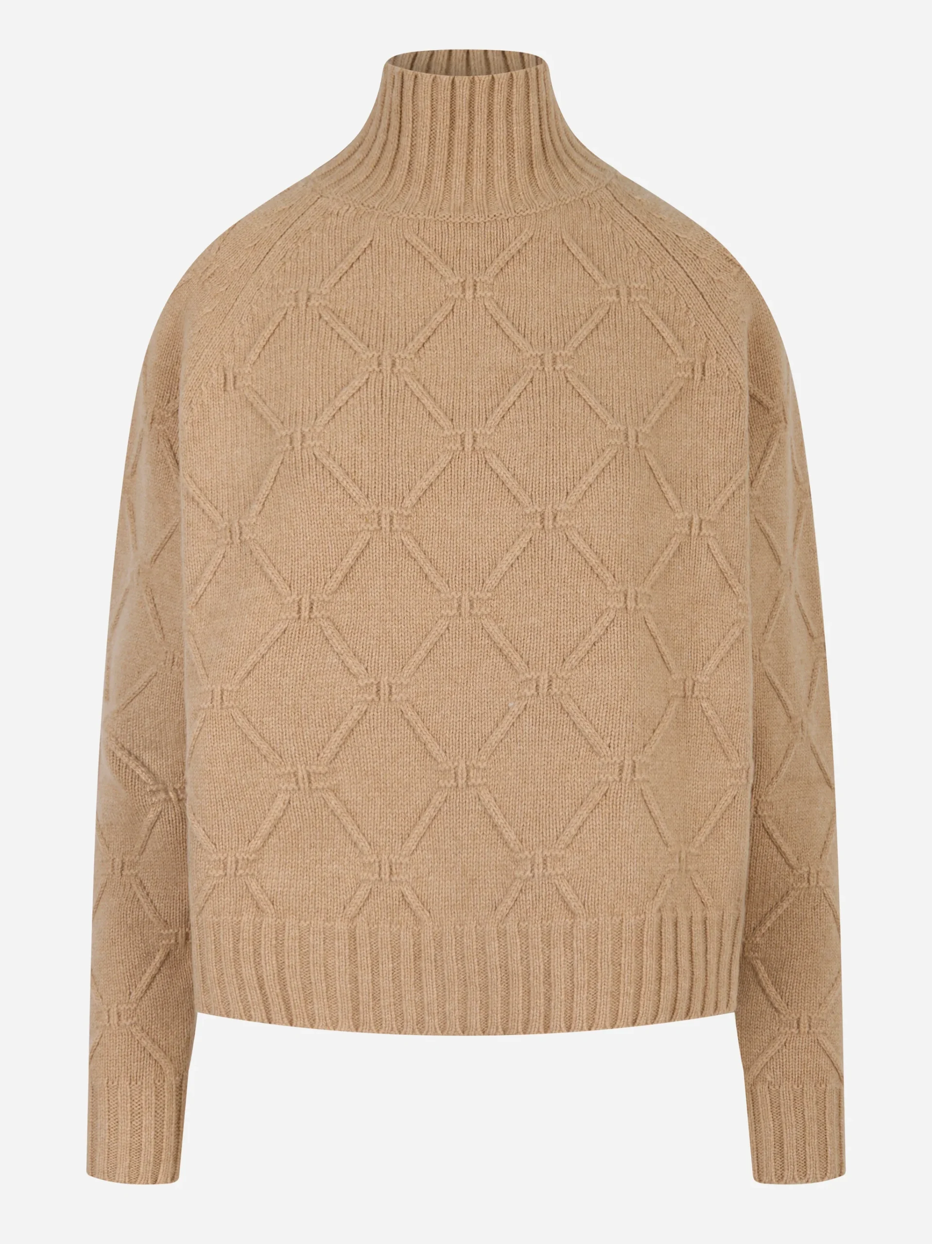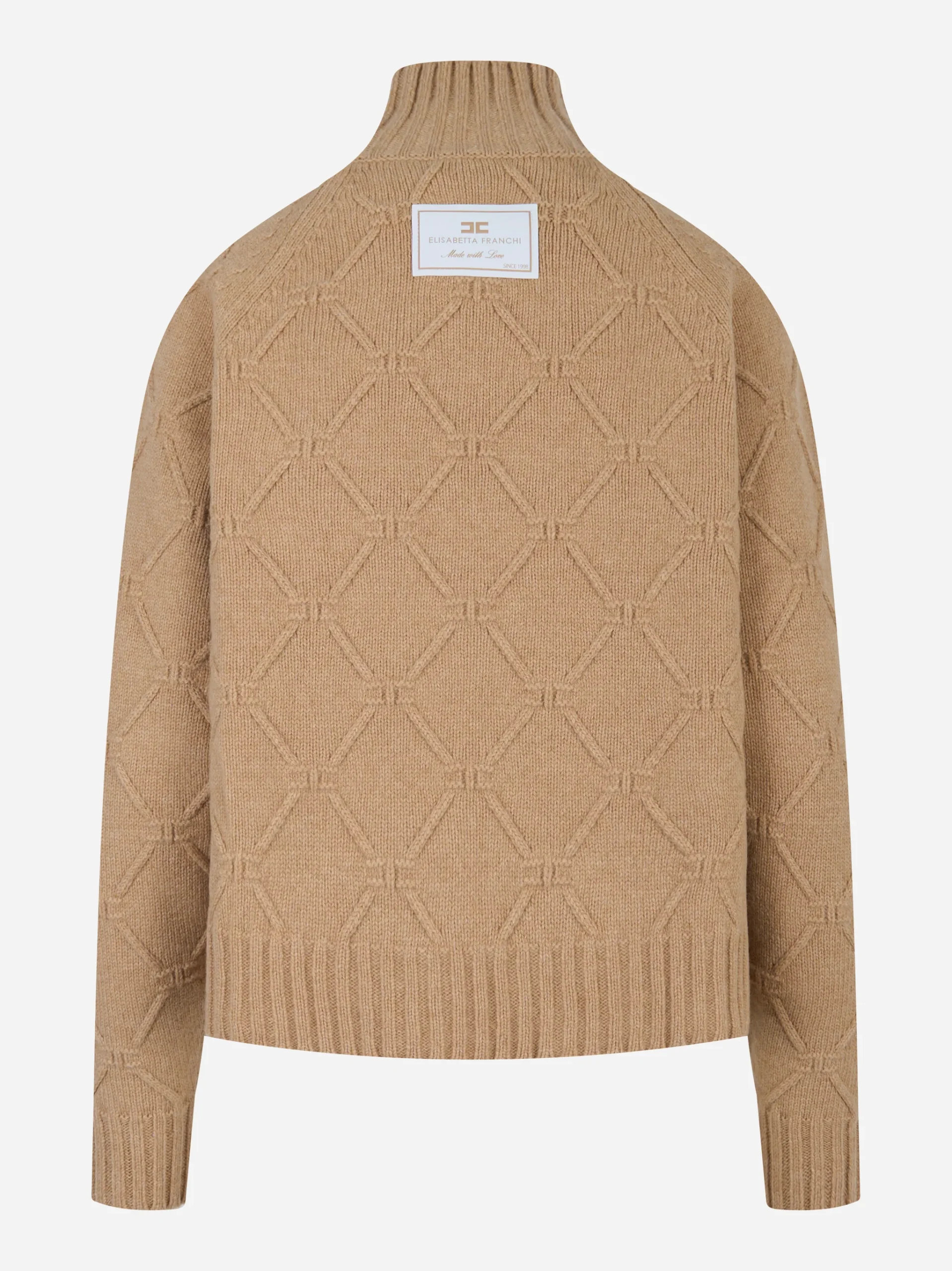 ITEM INFO Pullover in maglia con motivo jacquard a losanghe color beige Collo alto a coste Maniche lunghe raglan Orli rifiniti a costine Vestibilità regolare con struttura morbida Composizione: 90% lana, 10% cashmere Made in Italy TAGLIA E VESTIBILITÀ ▾ Model wears size 40 Model Height 174 cm Bust 83 cm Waist 61 cm Hips […]