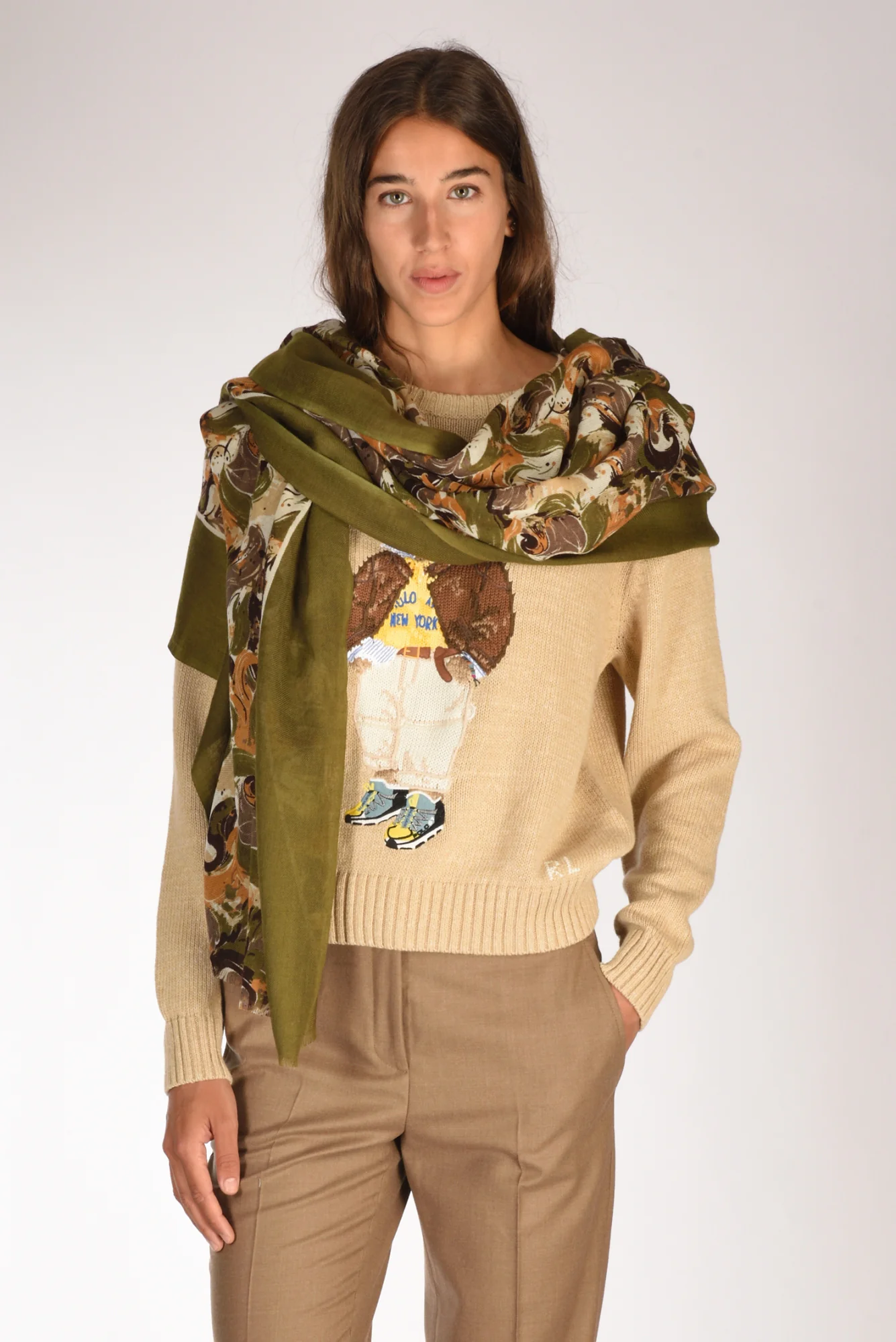 Pyaar Sciarpa Stampata Verde/marrone Donna