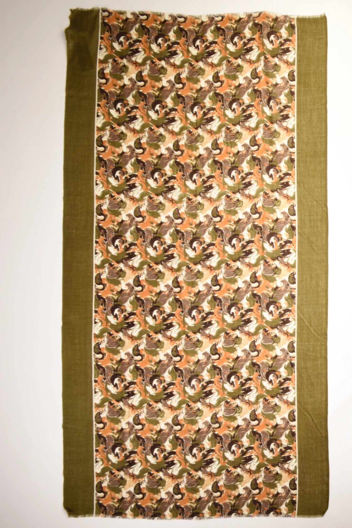 Sciarpa Stampata, Piccola Frangetta, Composizione 90 Lana 10 Seta, Made In India, Dimensioni 100×200