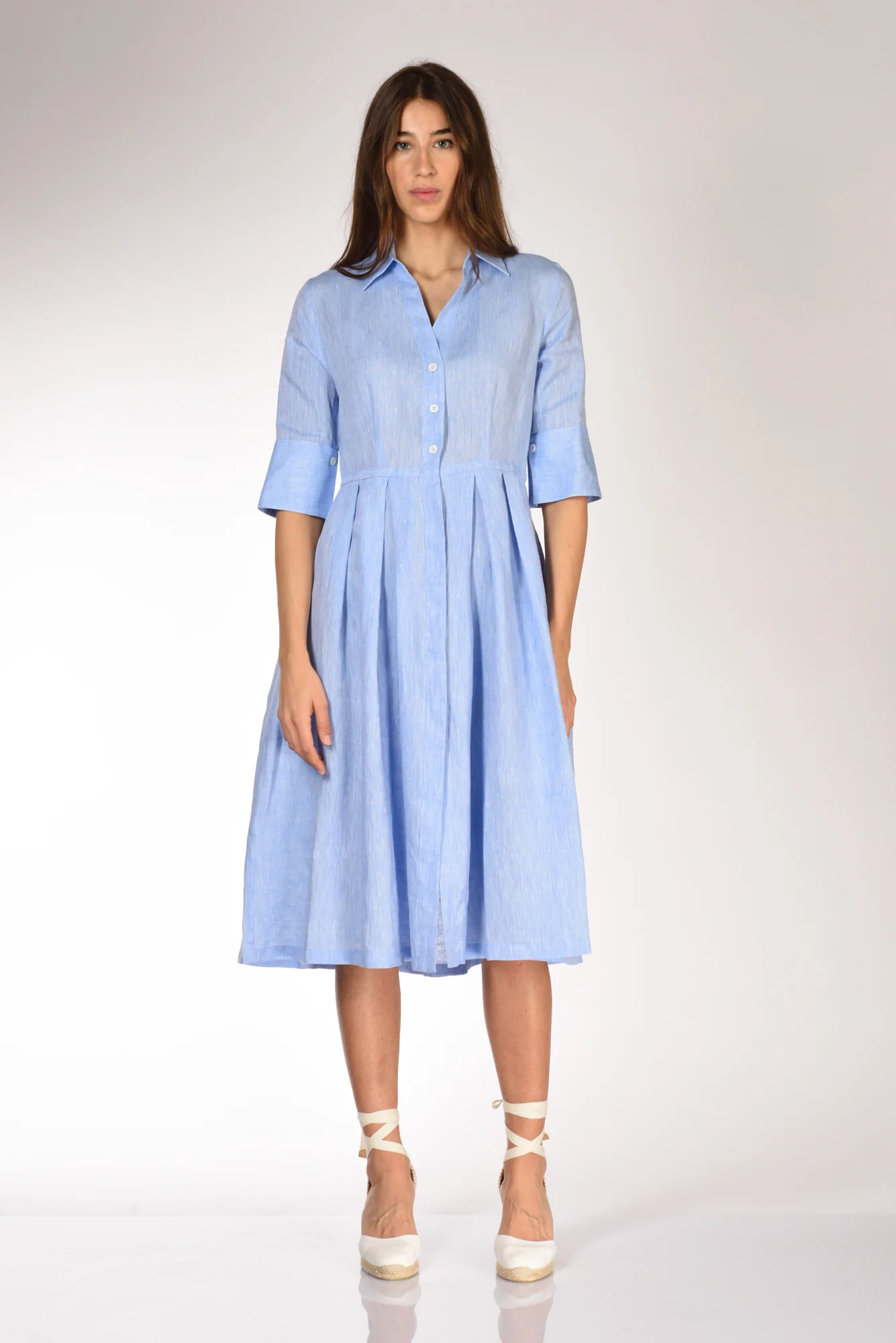 Abito Midi A Chemisier Tagliato In Vita, Maniche Al Gomito Con Polsino Alto Chiuso Da Bottone, Scollo A V Con Colletto A Camicia, Gonna A Pieghe Piatte, Tasche Inserite Lateralmente, Chiuso Da Bottoni A Vista E Parte Nascosti, Vestibilita’ Regular, Made In Tunisia, Composizione 100 Lino