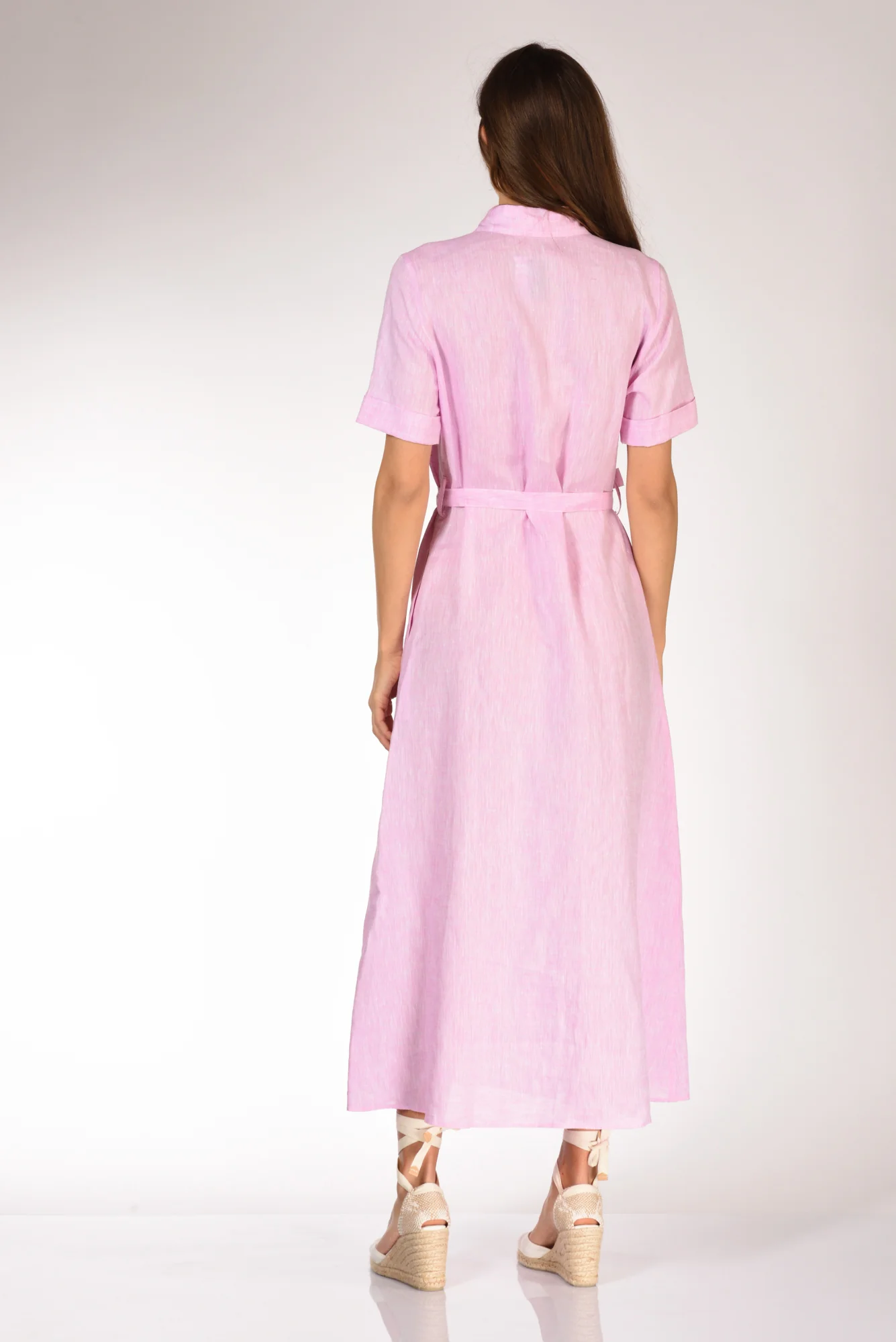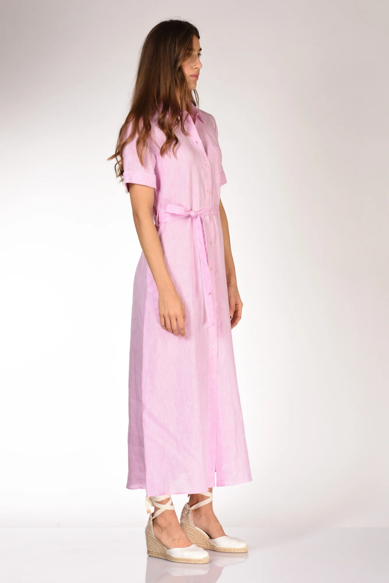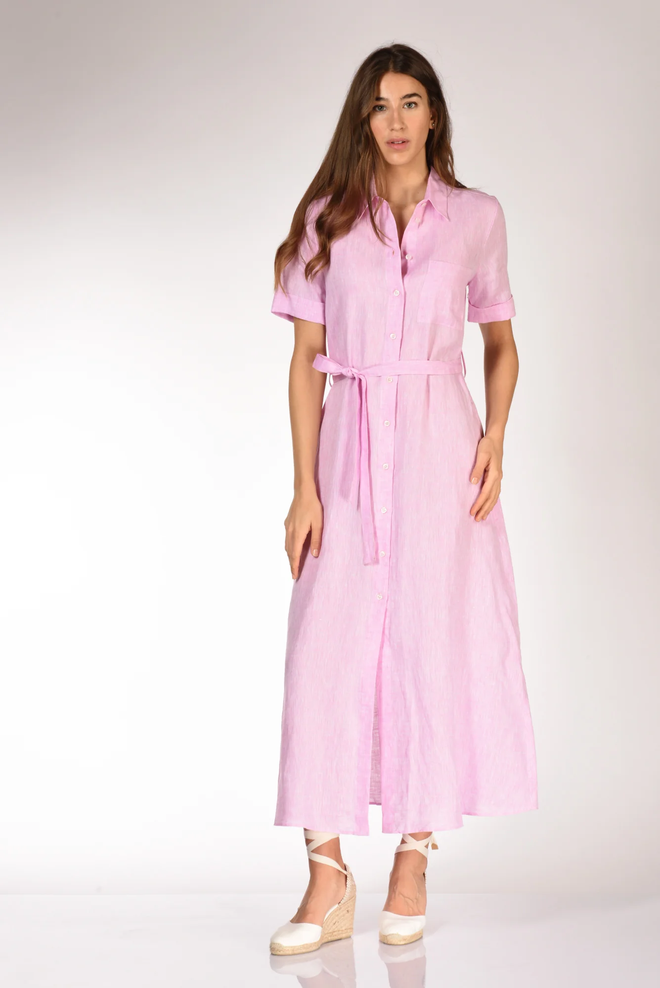 Abito Lungo A Chemisier, Mezza Manica Con Risvolto, Collo A Camicia, Passanti In Vita Con Cintura Abbinata, Tasca Applicata Frontalmente Ed Inserite Lateralmente, Chiuso Da Bottoni A Vista, Vestibilita’ Regular, Made In Tunisia, Composizione 100 Lino
