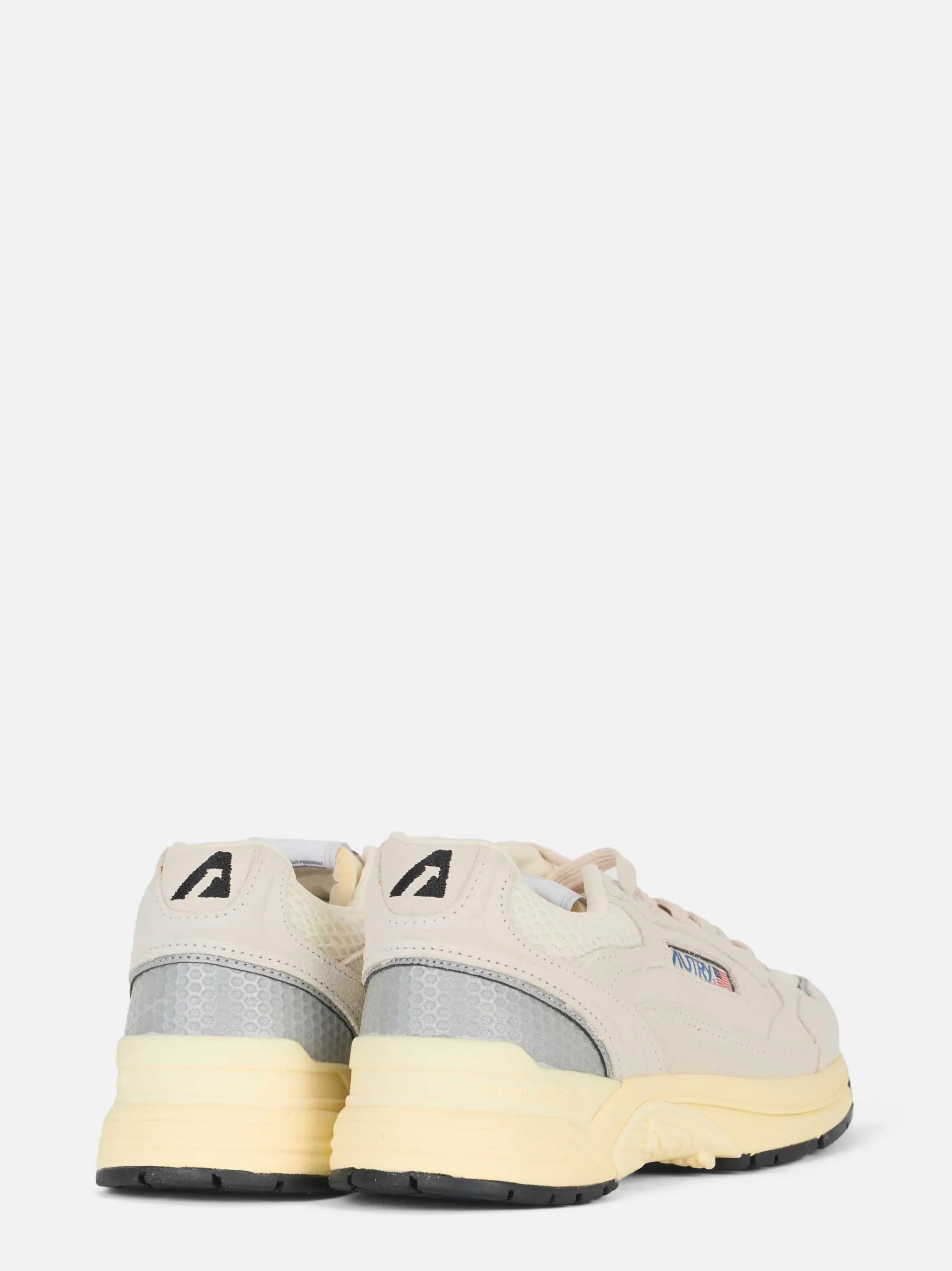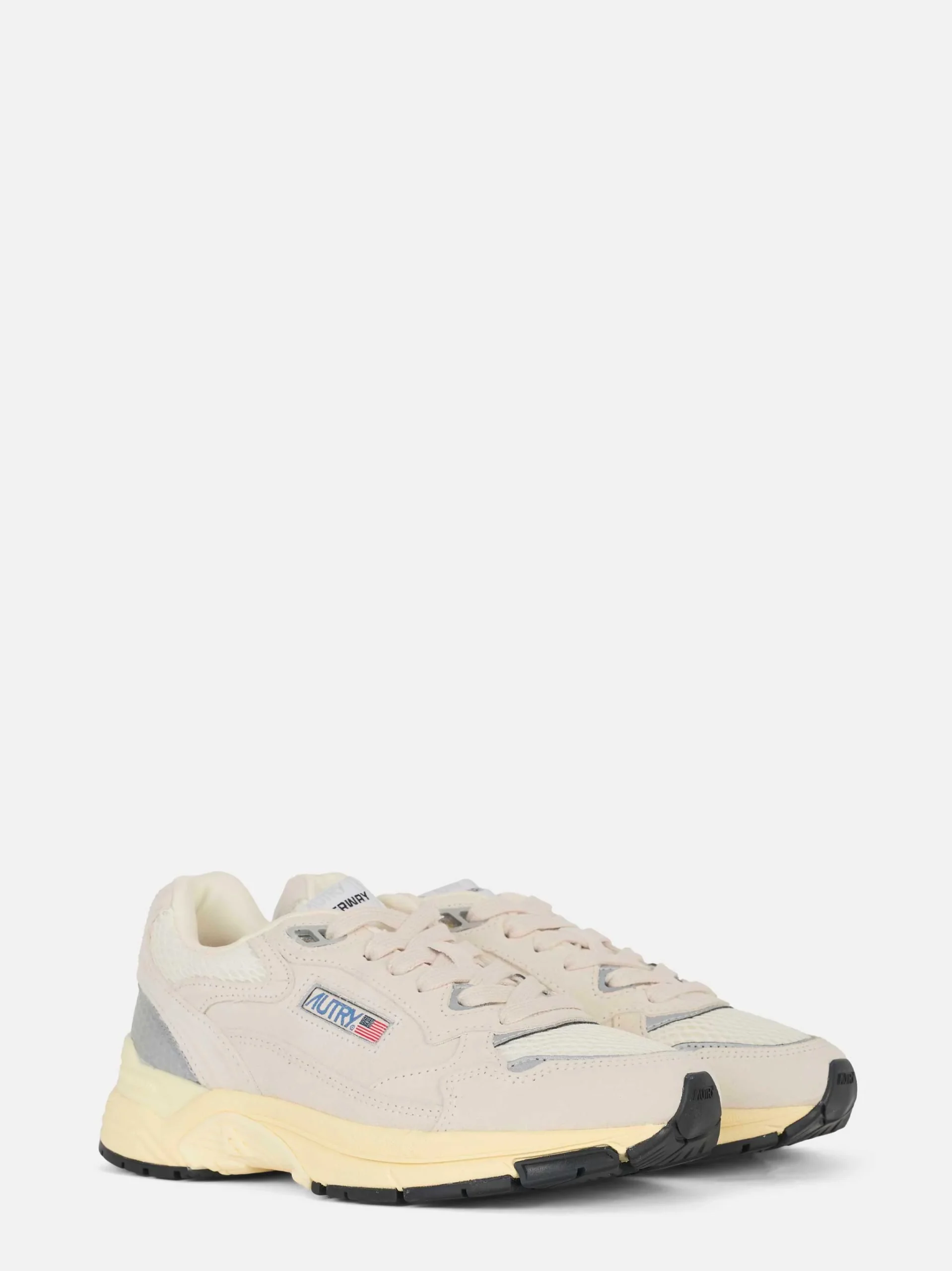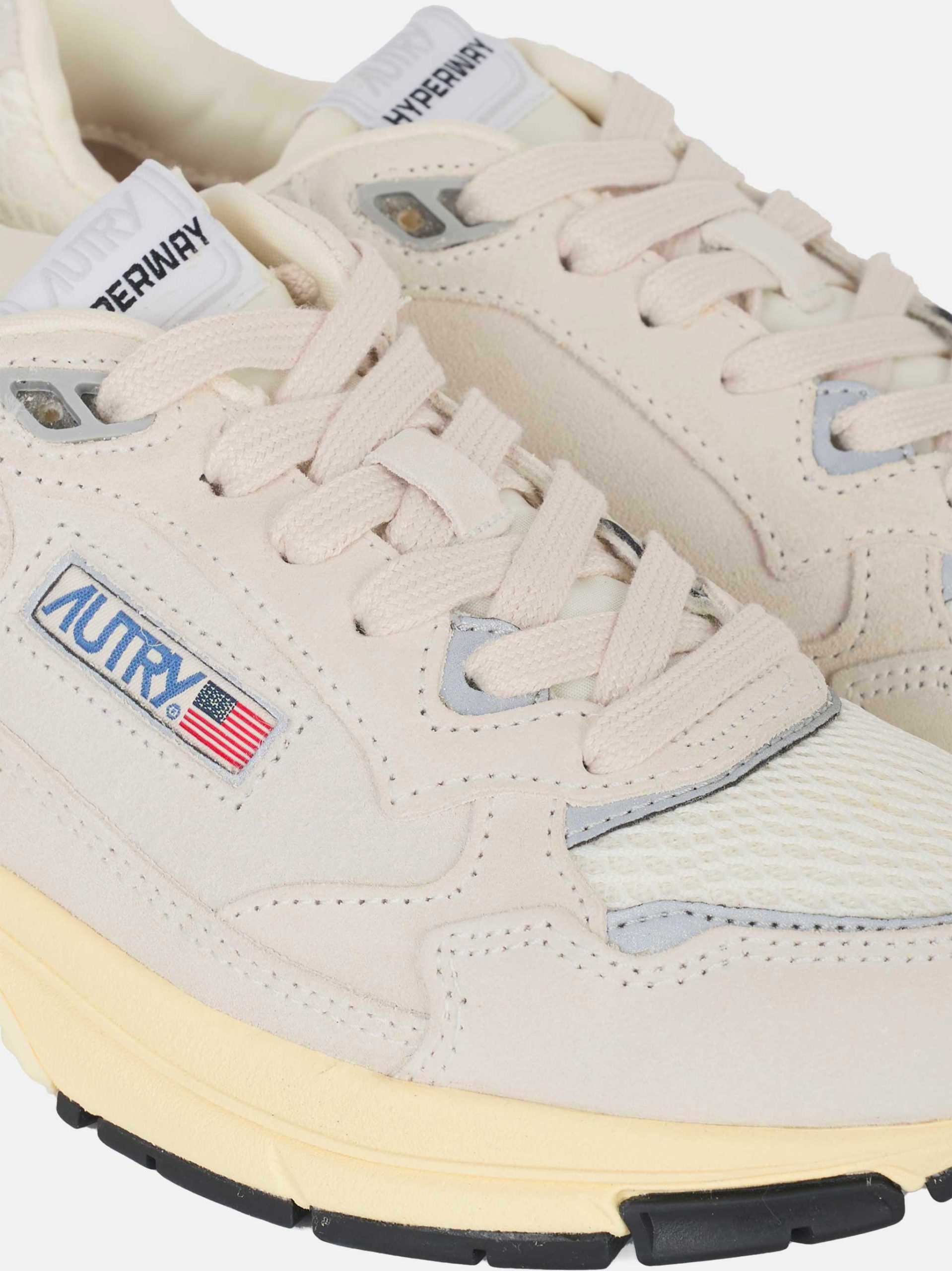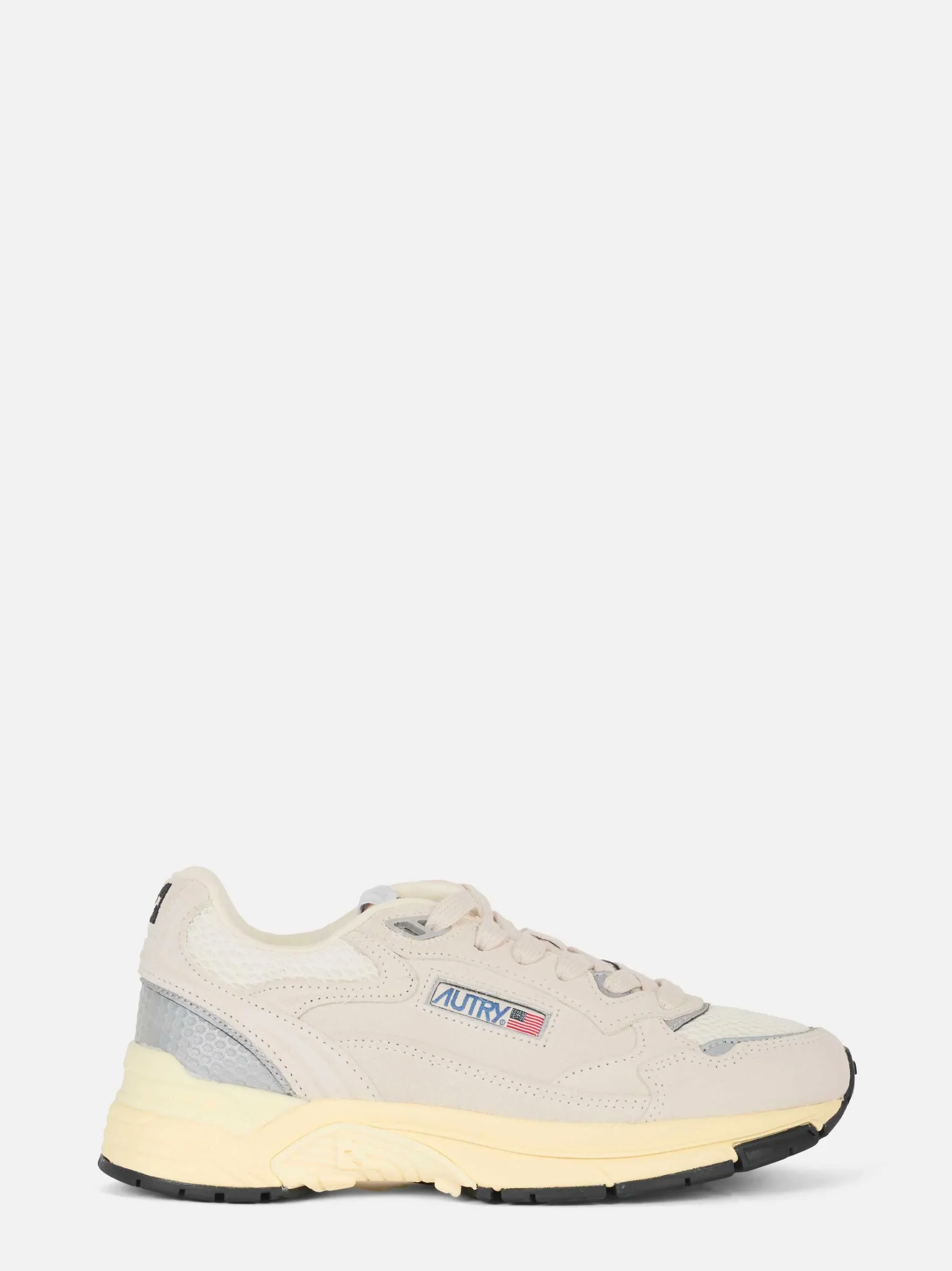 ITEM INFO Sneakers Hyperwave in mesh bianco e suede argento Inserti in pelle liscia tono su tono Logo Autry con patch e bandiera USA Linguetta imbottita con label ricamata Fodera interna in tessuto traspirante Suola chunky con battistrada in gomma Composizione: Mesh, Pelle e Suede