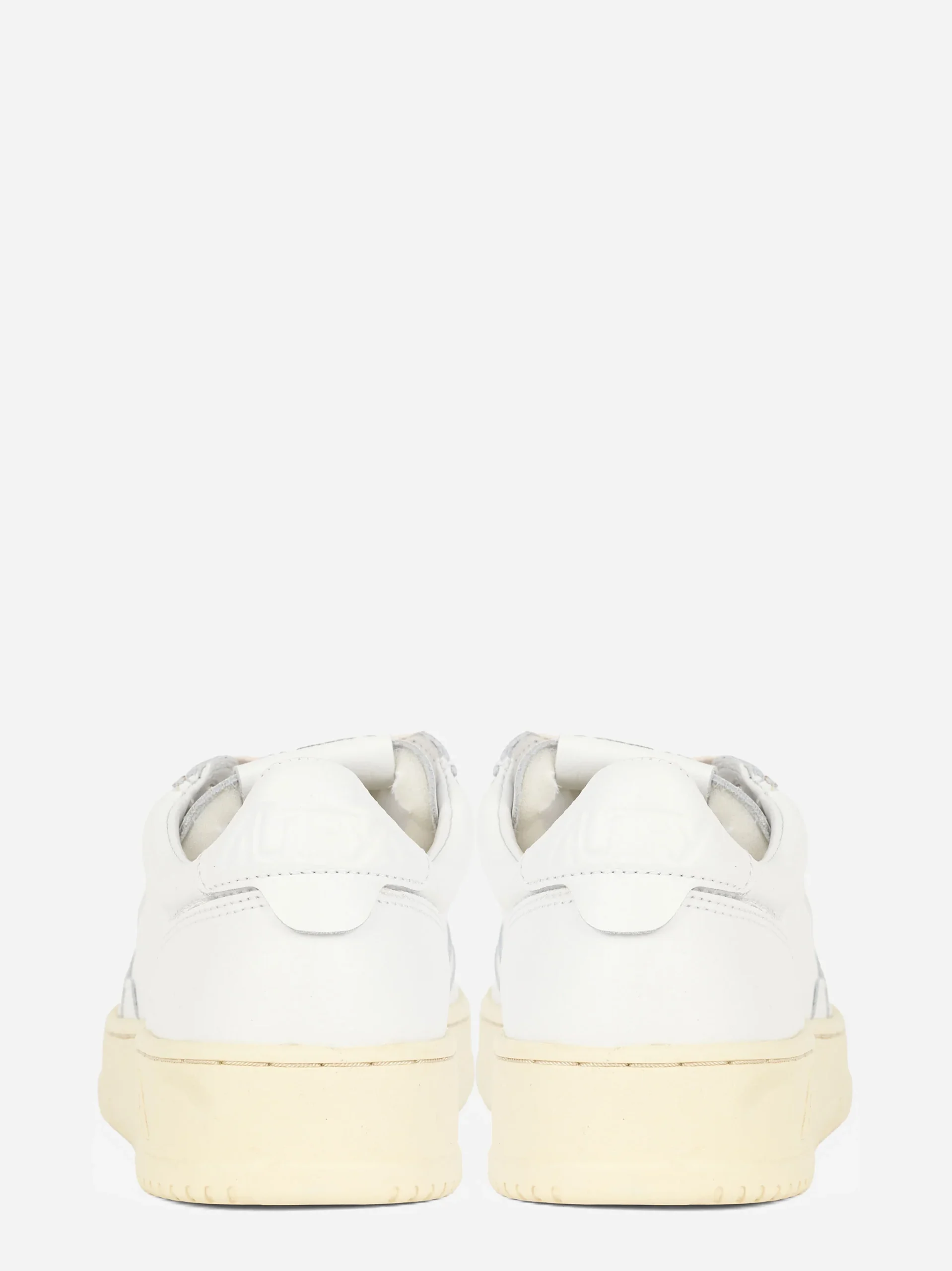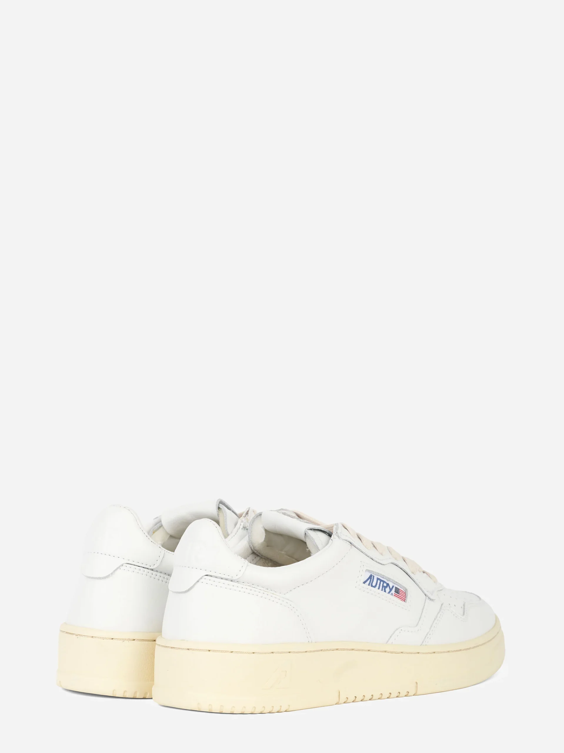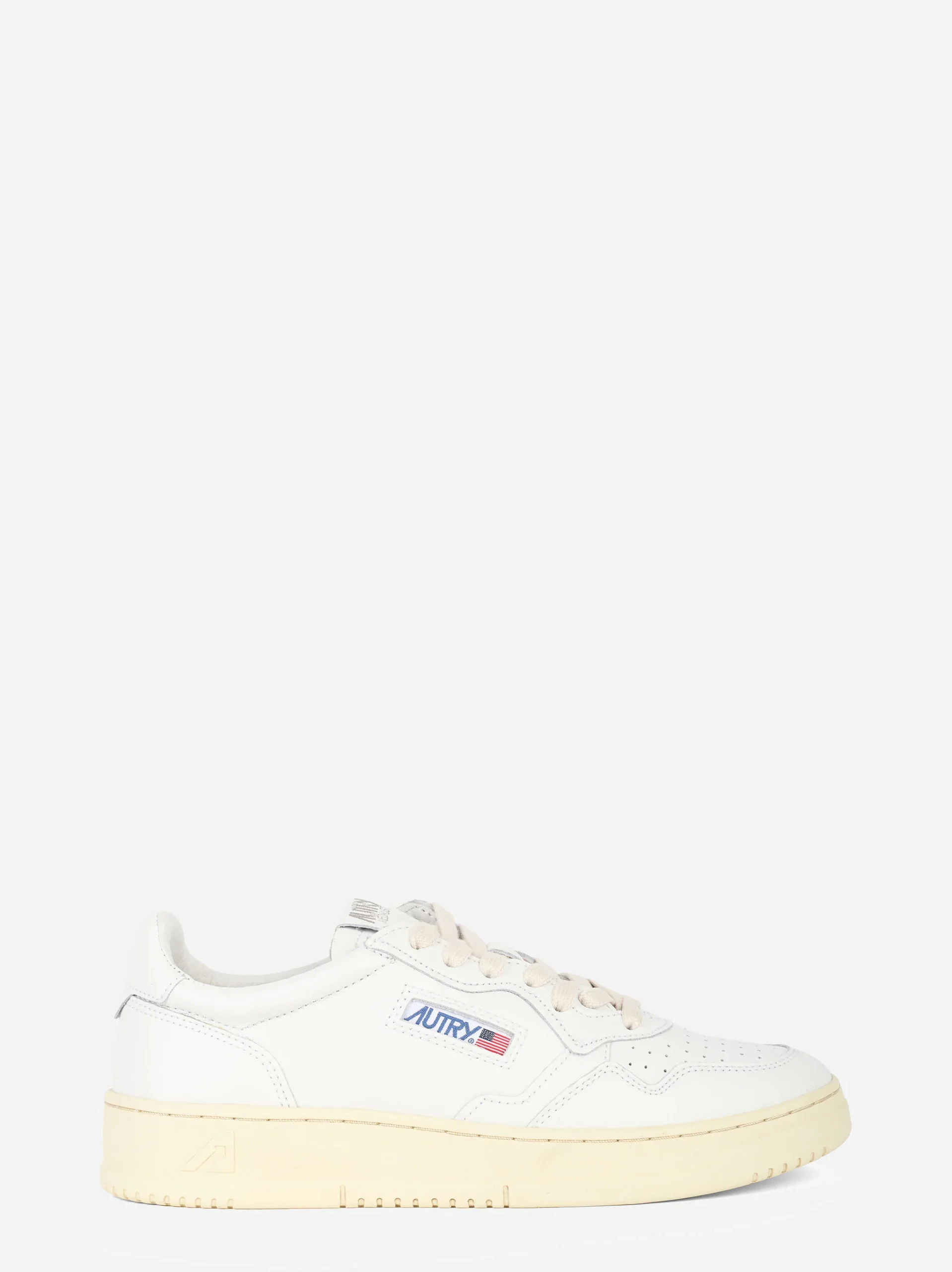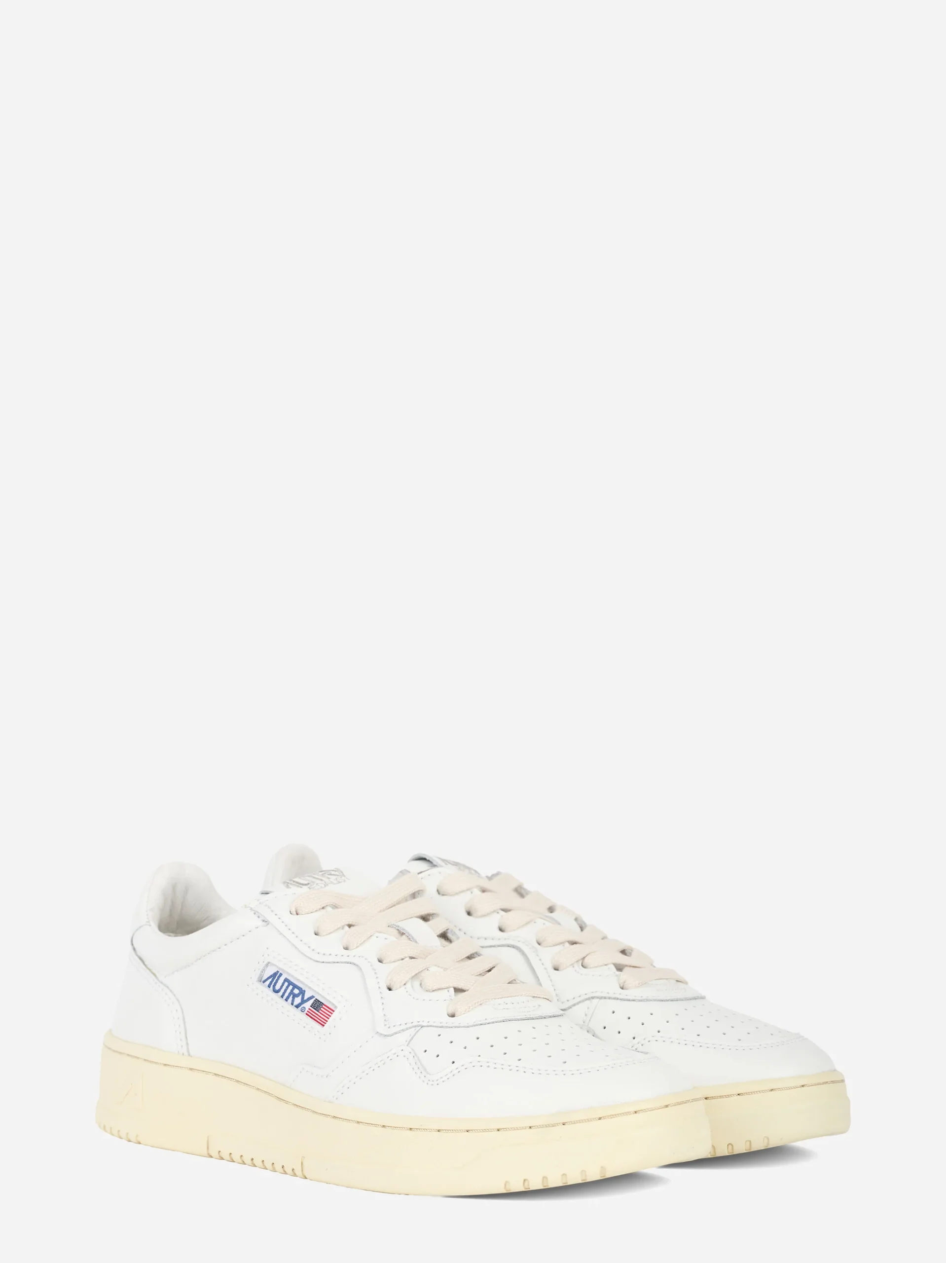 ITEM INFO Sneakers Medalist Low in pelle bianca Tomaia in pelle liscia con logo Autry laterale Suola vintage color crema Design ispirato agli anni Ottanta Comfort e versatilità per look casual e urban Composizione: pelle e gomma