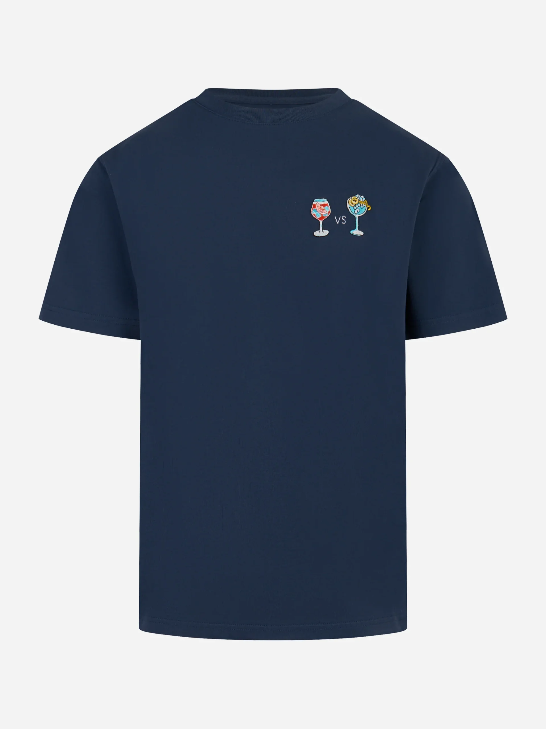 ITEM INFO T-shirt Arnott in jersey di cotone color blu Motivo cocktail ricamato sul petto Girocollo a costine Maniche corte classiche Vestibilità regolare Orlo con finitura pulita Composizione: 100% Cotone Made in Italy