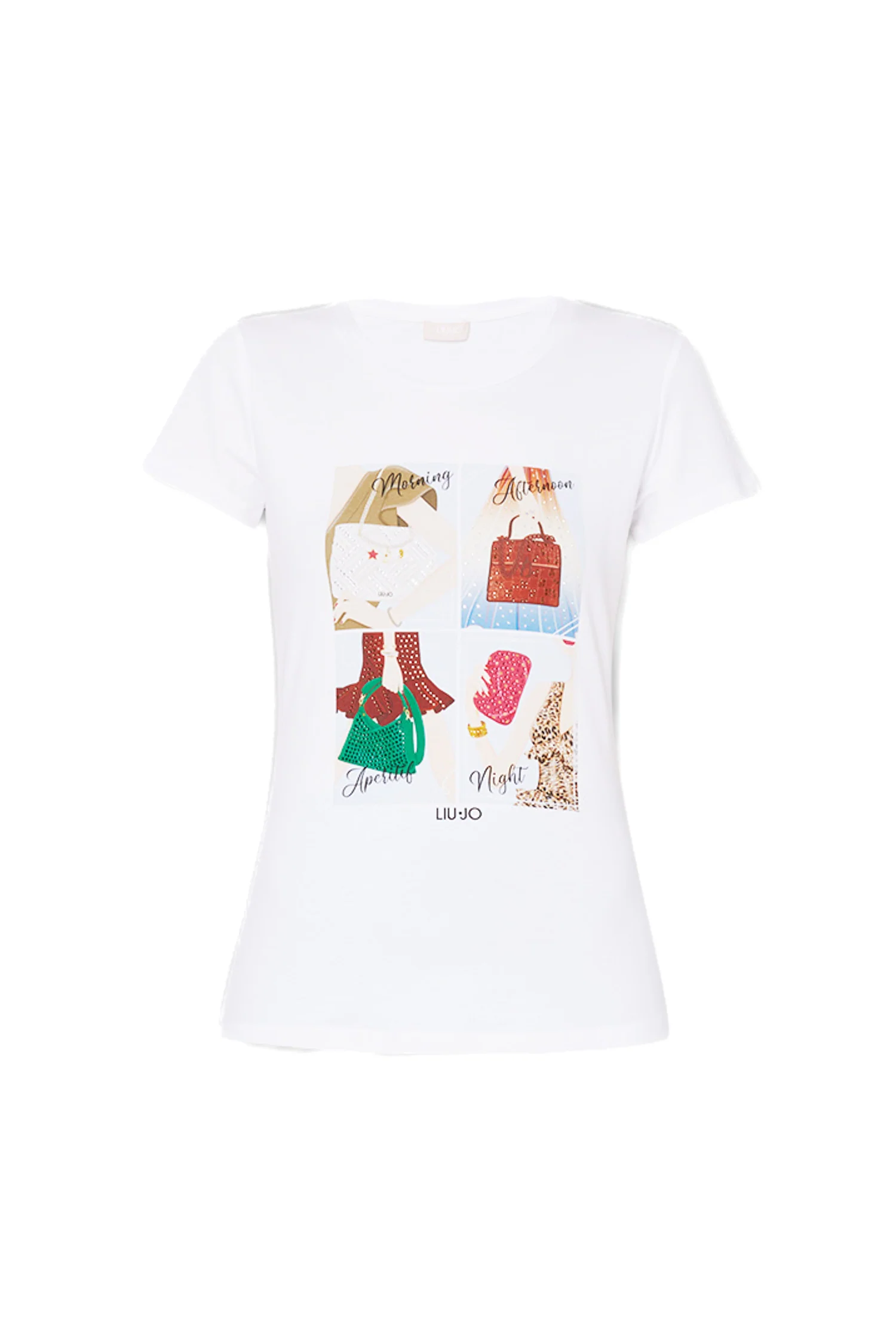 T-shirt bianca in cotone stretch con stampa Bag Time