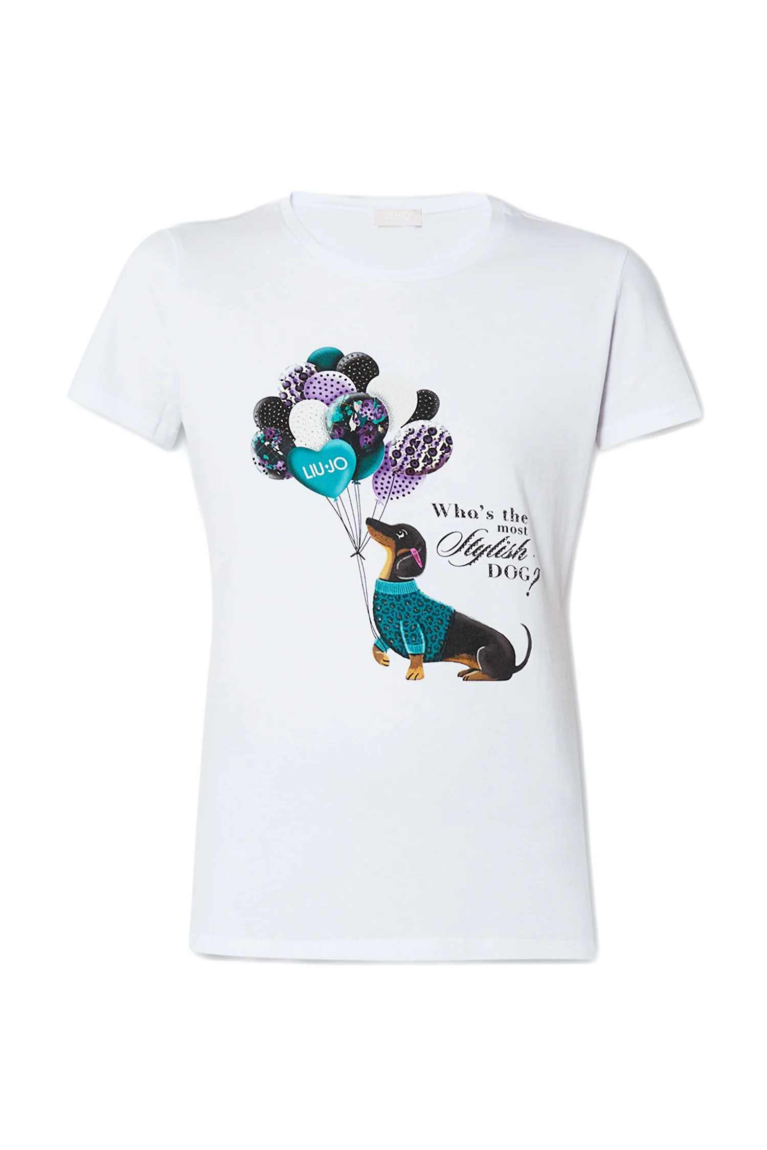 • Stampa grafica “Dog” con strass sul davanti