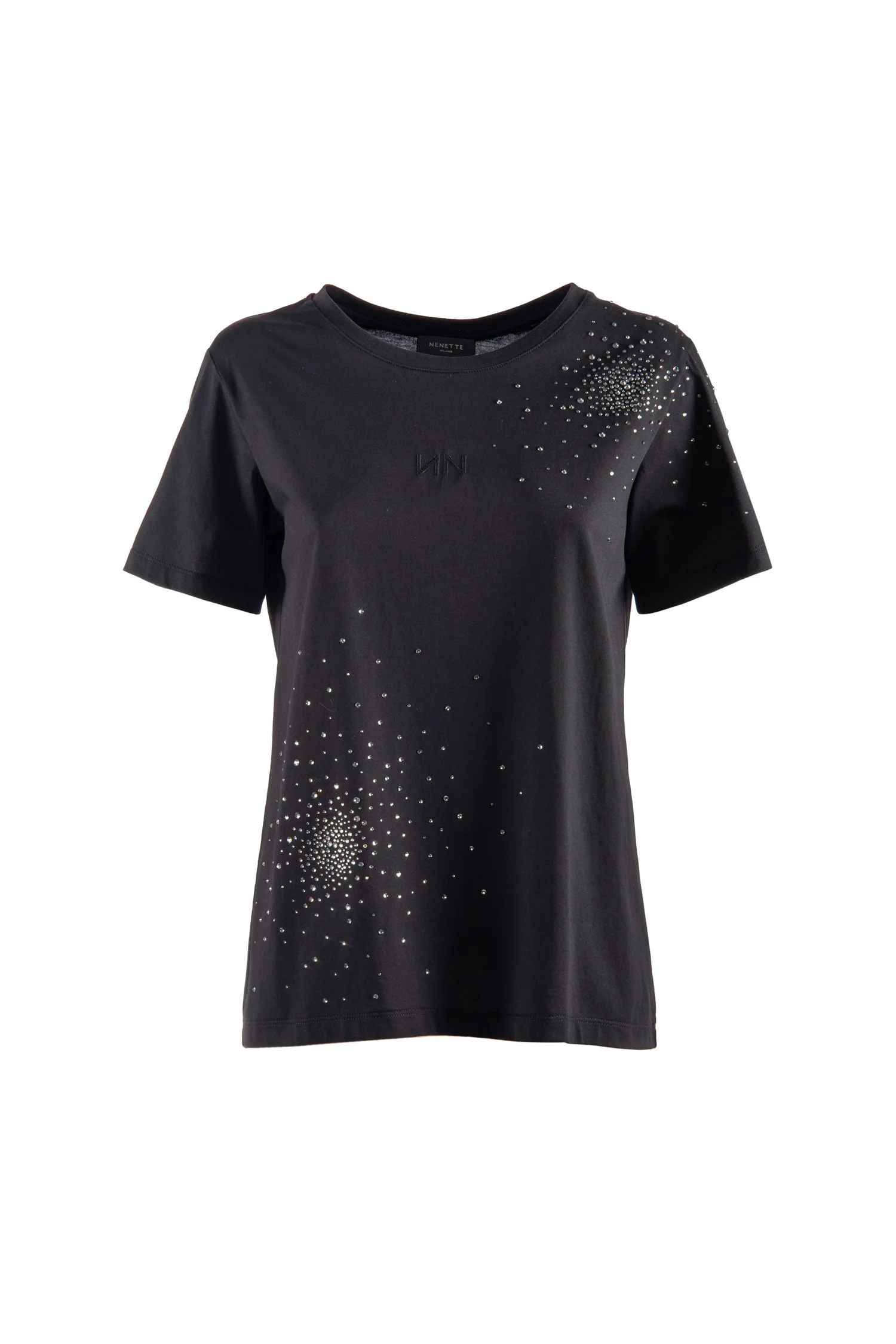 Codice Prodotto: 38BB-DAJE-0700 Dettagli:Daje è una t-shirt a manica corta con disegno di fuochi d’artificio in strass. Perfetta per un look moderno e glamour, questa maglietta è realizzata in 100% cotone per garantire comfort e resistenza.Composizione:100%COTONE Vestibilità:Regolare