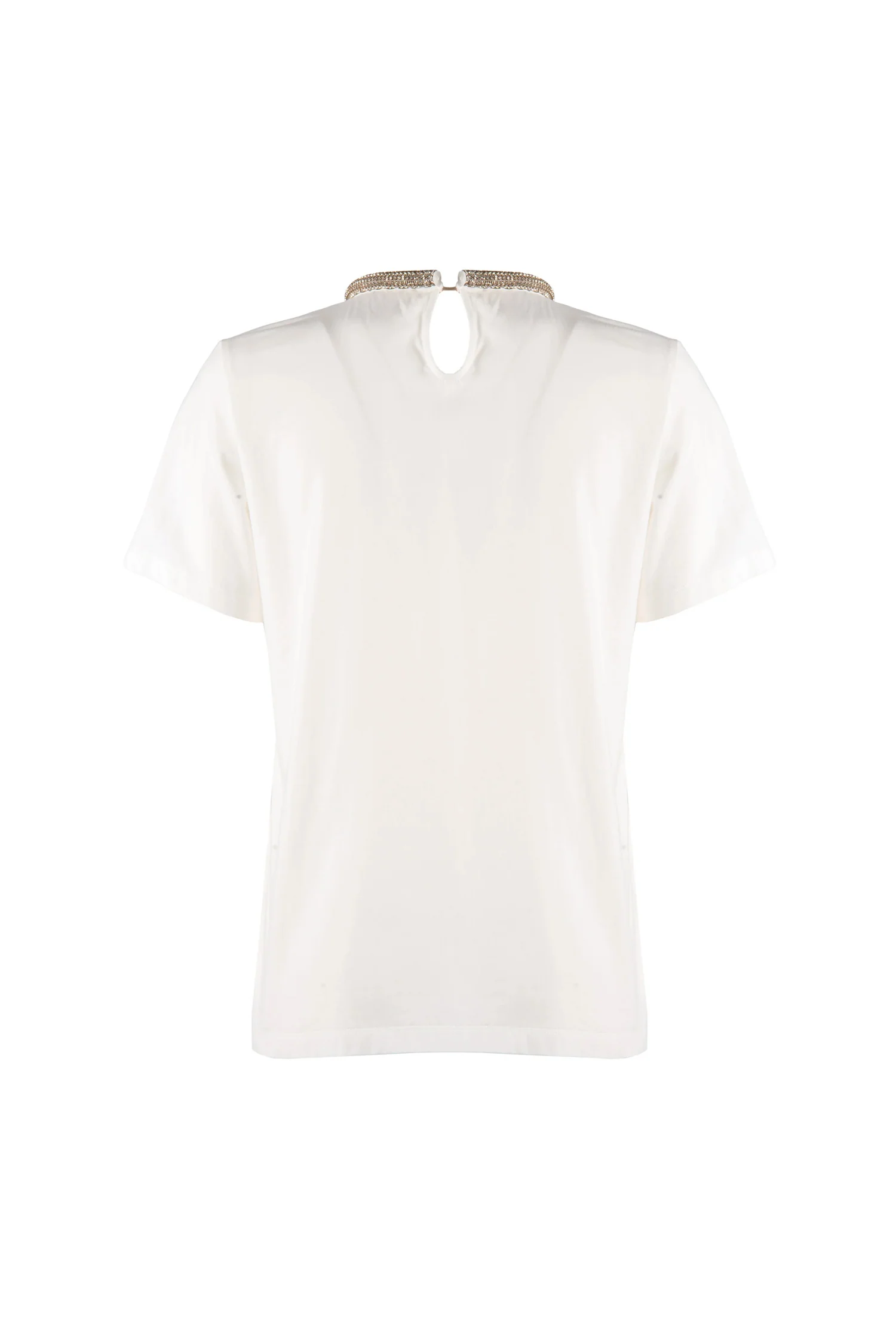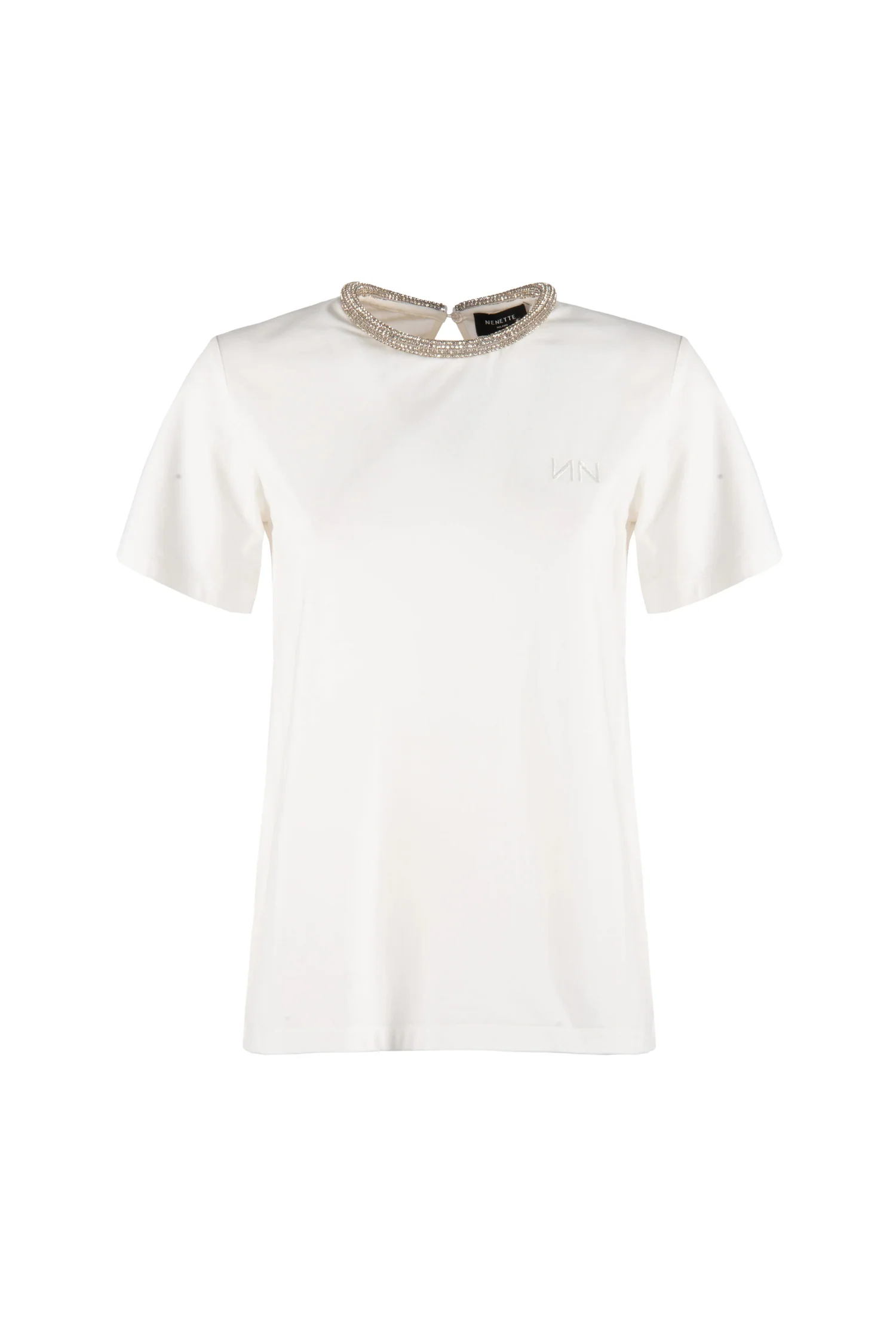 T-shirt “Dexter” avorio in cotone con strass sul collo