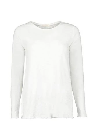 T-Shirt donna girocollo a manica lunga, orlo a taglio vivo in 100% Cotone Fiammato. Colore Bianco.