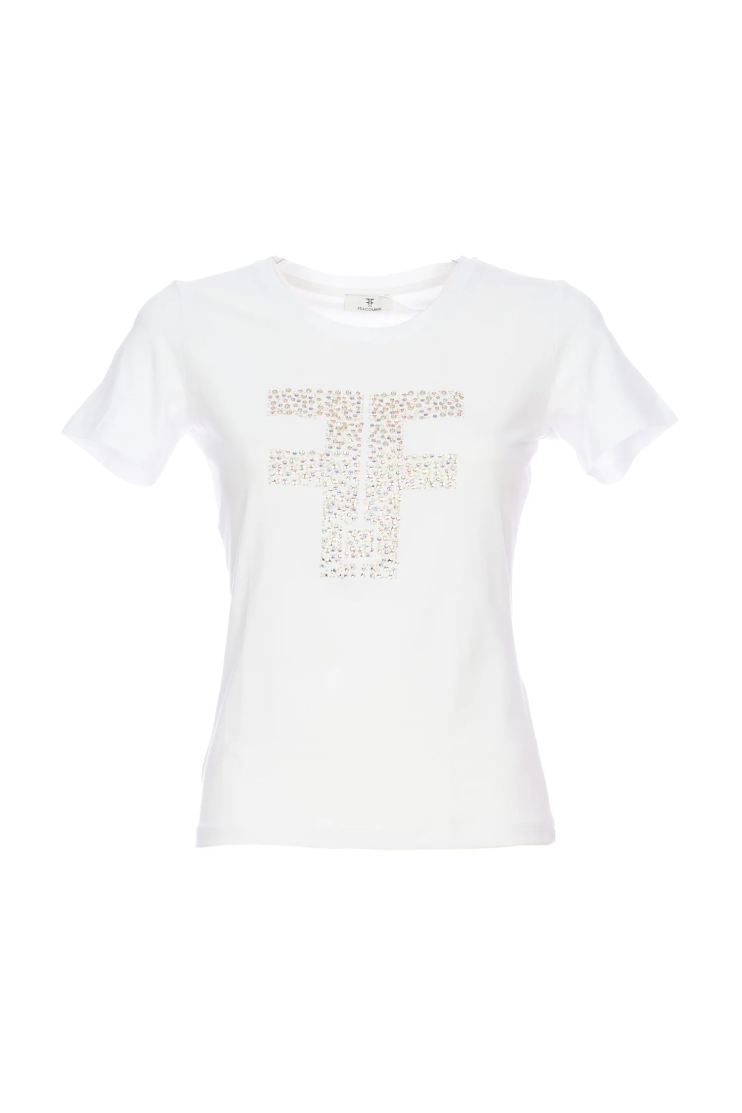 Codice Prodotto: FP24ST3002J464N5-278 Dettagli:T-shirt regular in jersey stretch, girocollo, logo con strass sul davanti, e con maniche corte.COMPOSITION: COTTON 95% ELASTANE 5% Vestibilità:Regolare