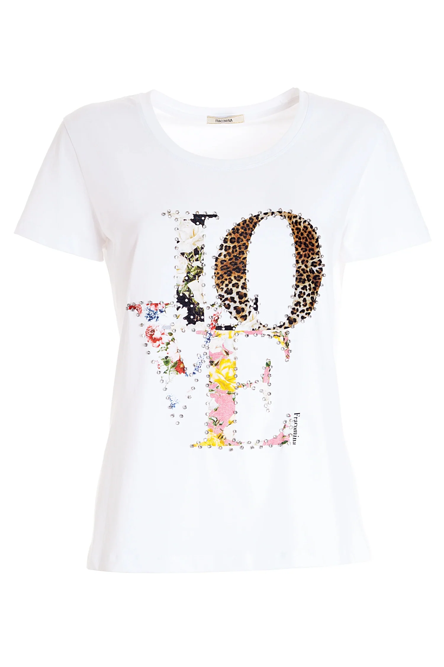 Codice Prodotto: FR22ST3003J40109-278 Dettagli:T-shirt regular in jersey con stampa, applicazioni luminose, girocollo, e con maniche corte. COMPOSITION: COTTON 95% ELASTANE 5% Vestibilità:Regolare