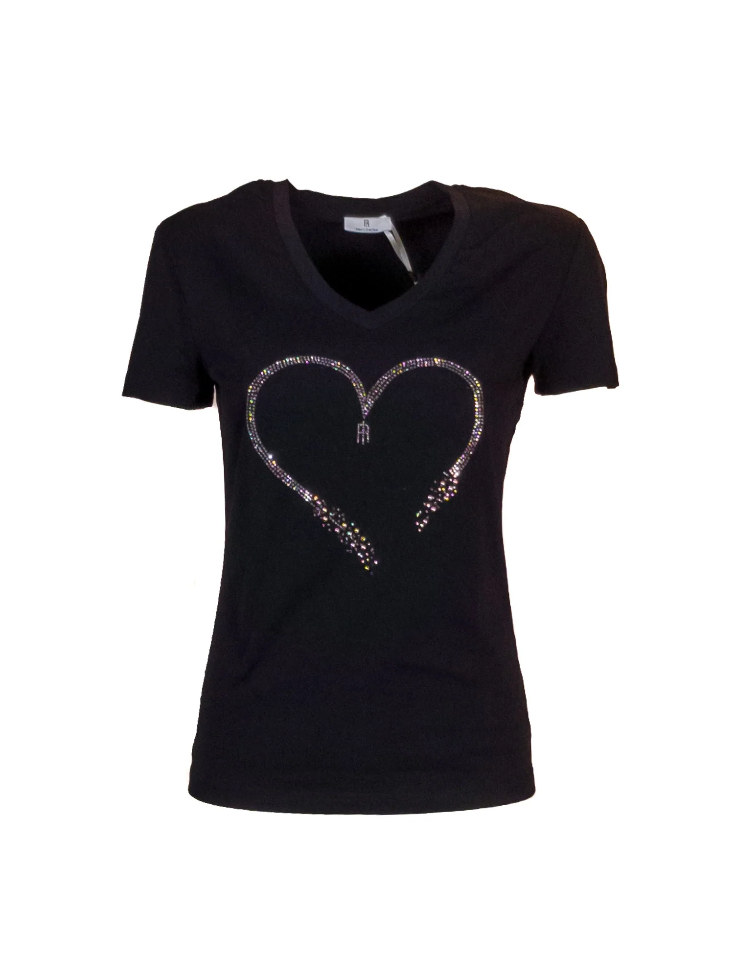 Codice Prodotto: FP25ST3007J401N5-053 Dettagli:T-shirt regular in jersey, scollo a V, cuore con strass luminosi, e con maniche corte. • Composition: SHELL: COTTON 95% ELASTANE 5% Vestibilità:Regolare