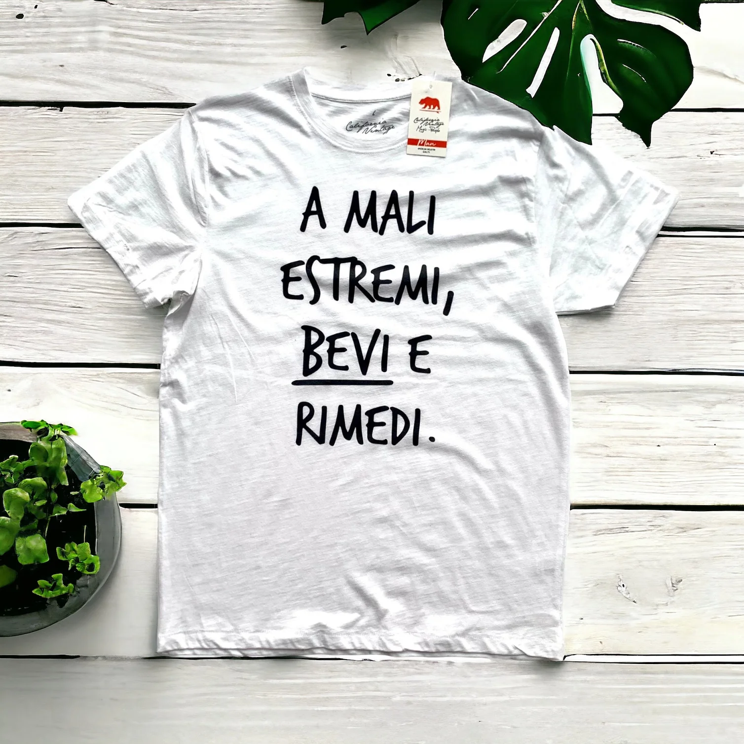 T-Shirt da uomo in cotone fiammato, taglio leggermente slip, consigliata una misura in più dell’abituale all’acquisto. Composizione 100% Cotone Bio
