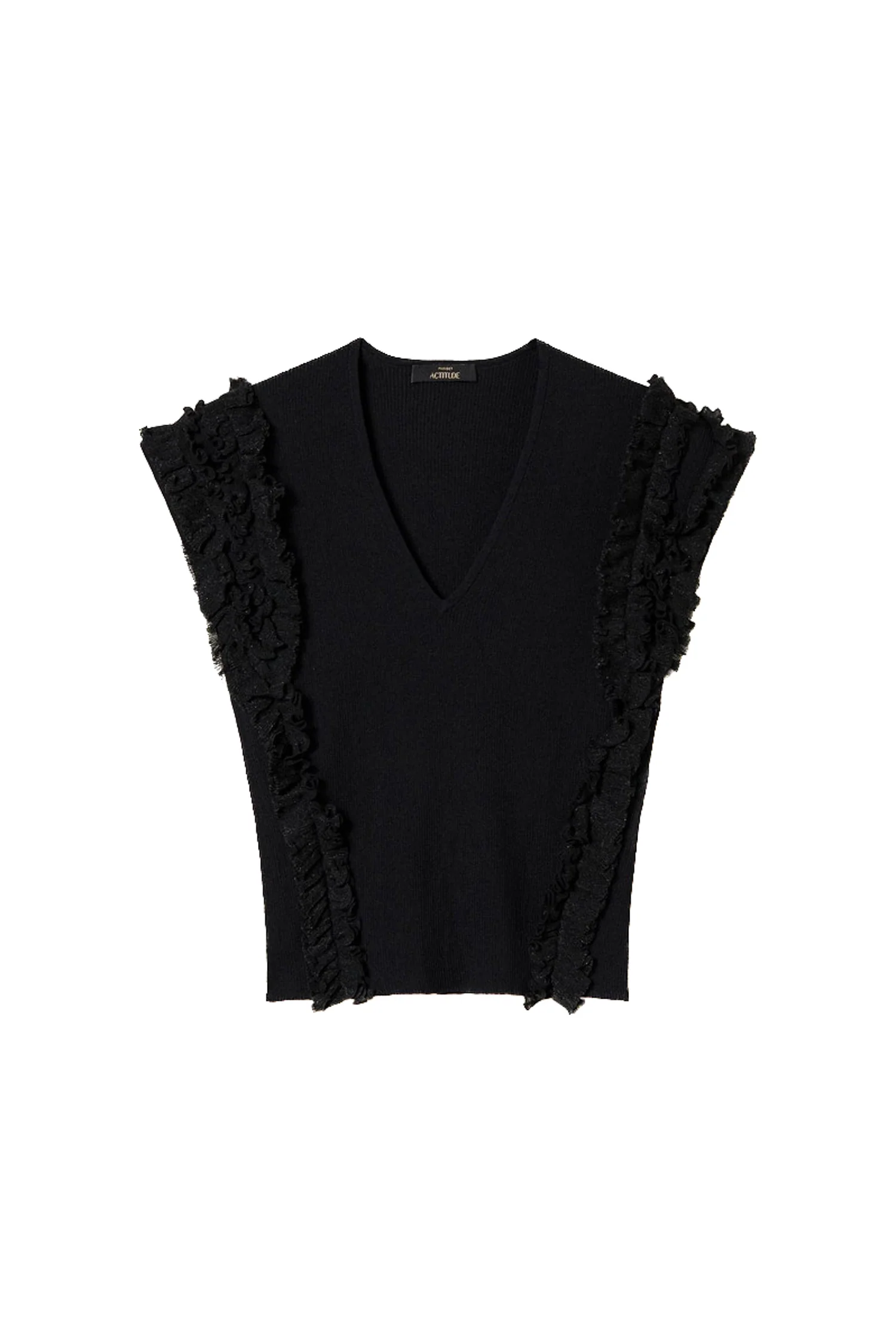 Top fitted collezione Actitude a costine in misto cotone con scollo a V e volant arricciati applicati.