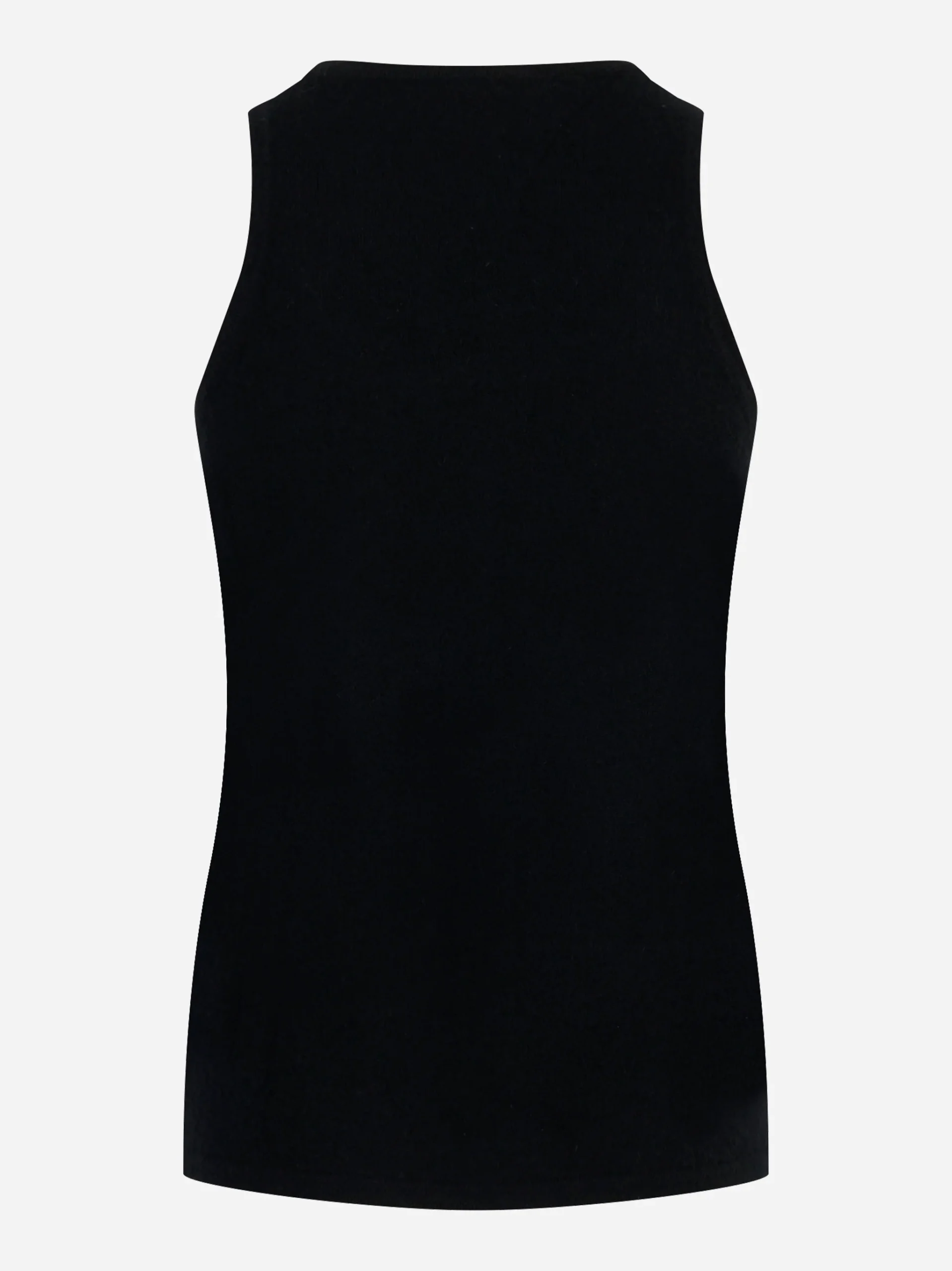 ITEM INFO Top girocollo in maglia fine Realizzato in filato misto cashmere e seta Spalline larghe e taglio aderente Design minimal e senza cuciture visibili Finiture pulite su collo, giromanica e orlo Composizione: 90% Cashmere, 10% Seta Made in Italy