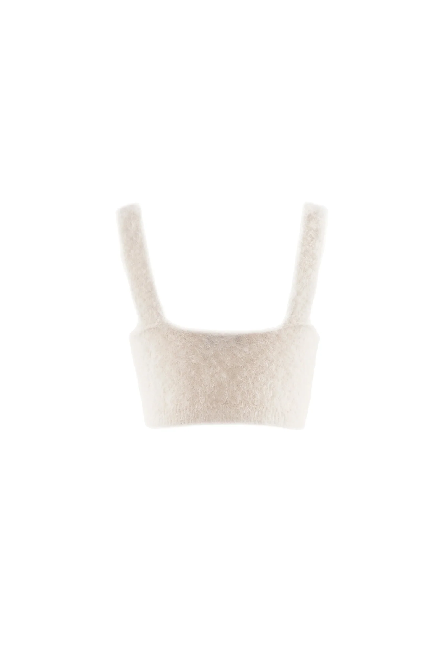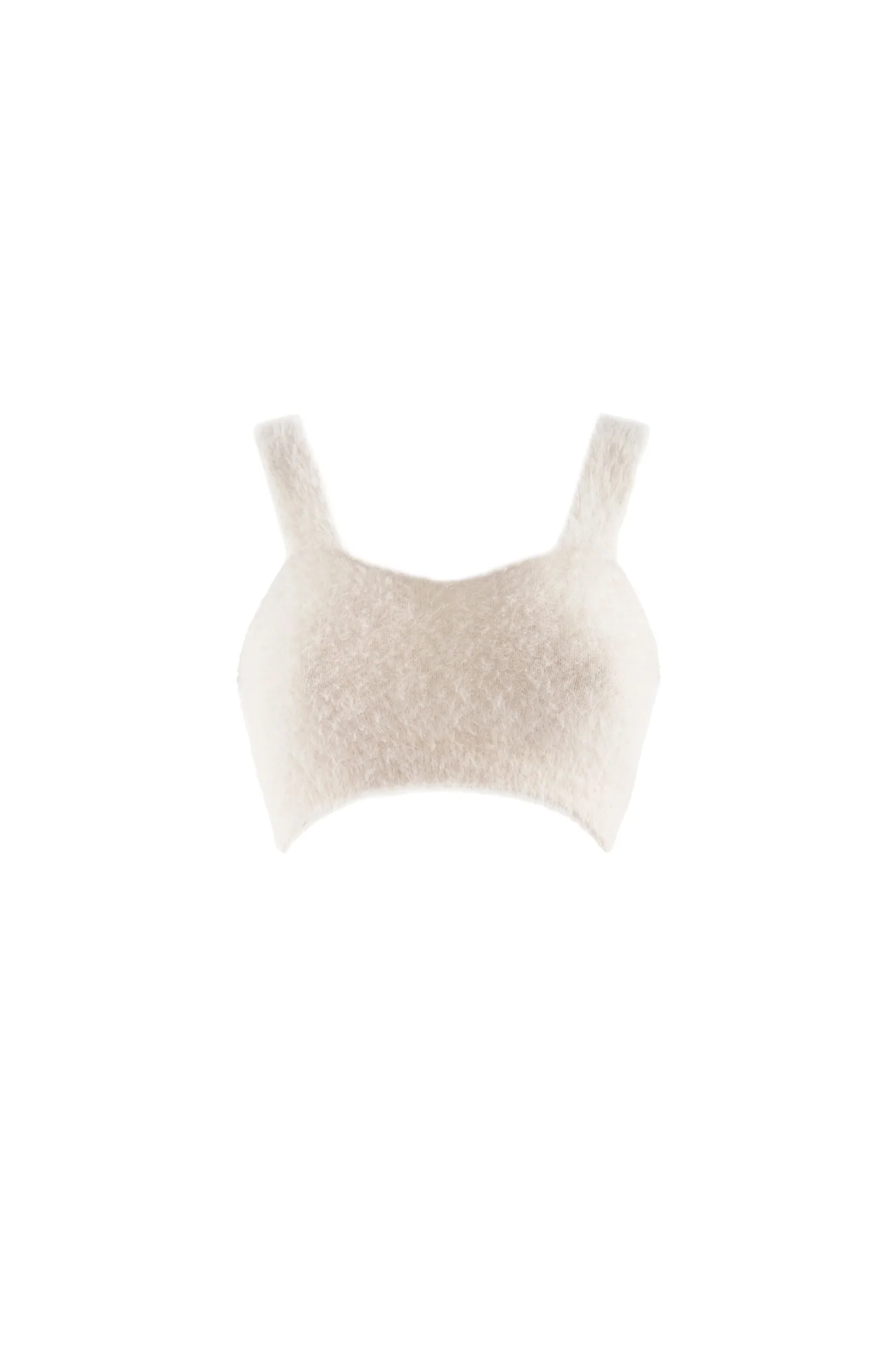 Grazie all’effetto pelosino, Mini è un top in maglia morbido al tatto. Ideale da indossare sotto in cardigan o una giacca.