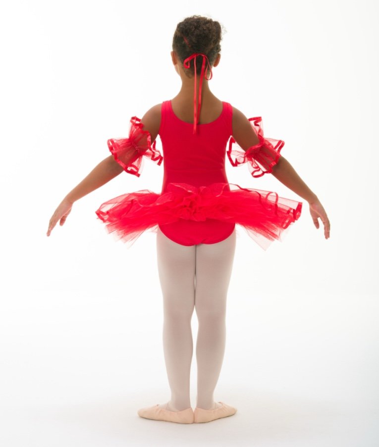 Tutù bambina a canotta, primo velo in tulle brillante e passamaneria. Manichette incluse. Taglie bambina. Realizzato su ordinazione, tempi di consegna variabili.