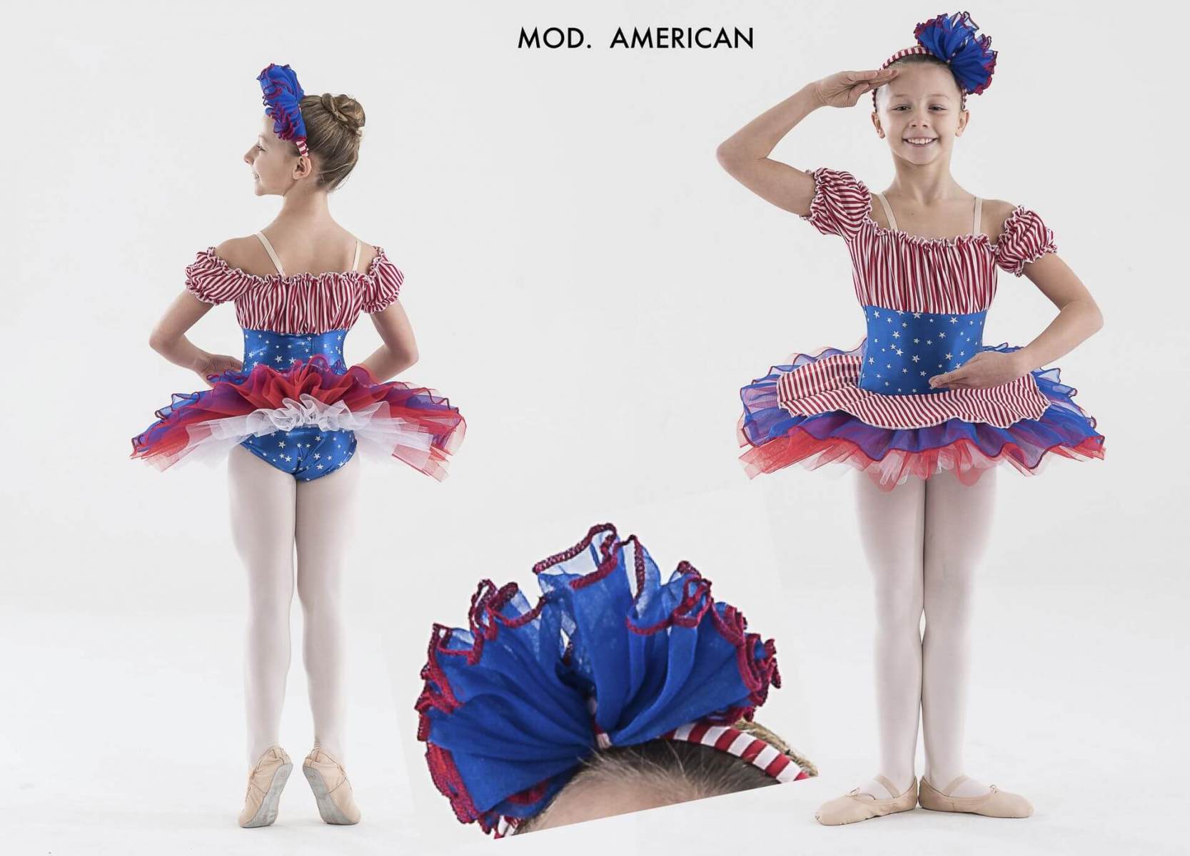 Simpatico tutù “americano” per bimba. Acconciatura esclusa. Taglie bambina