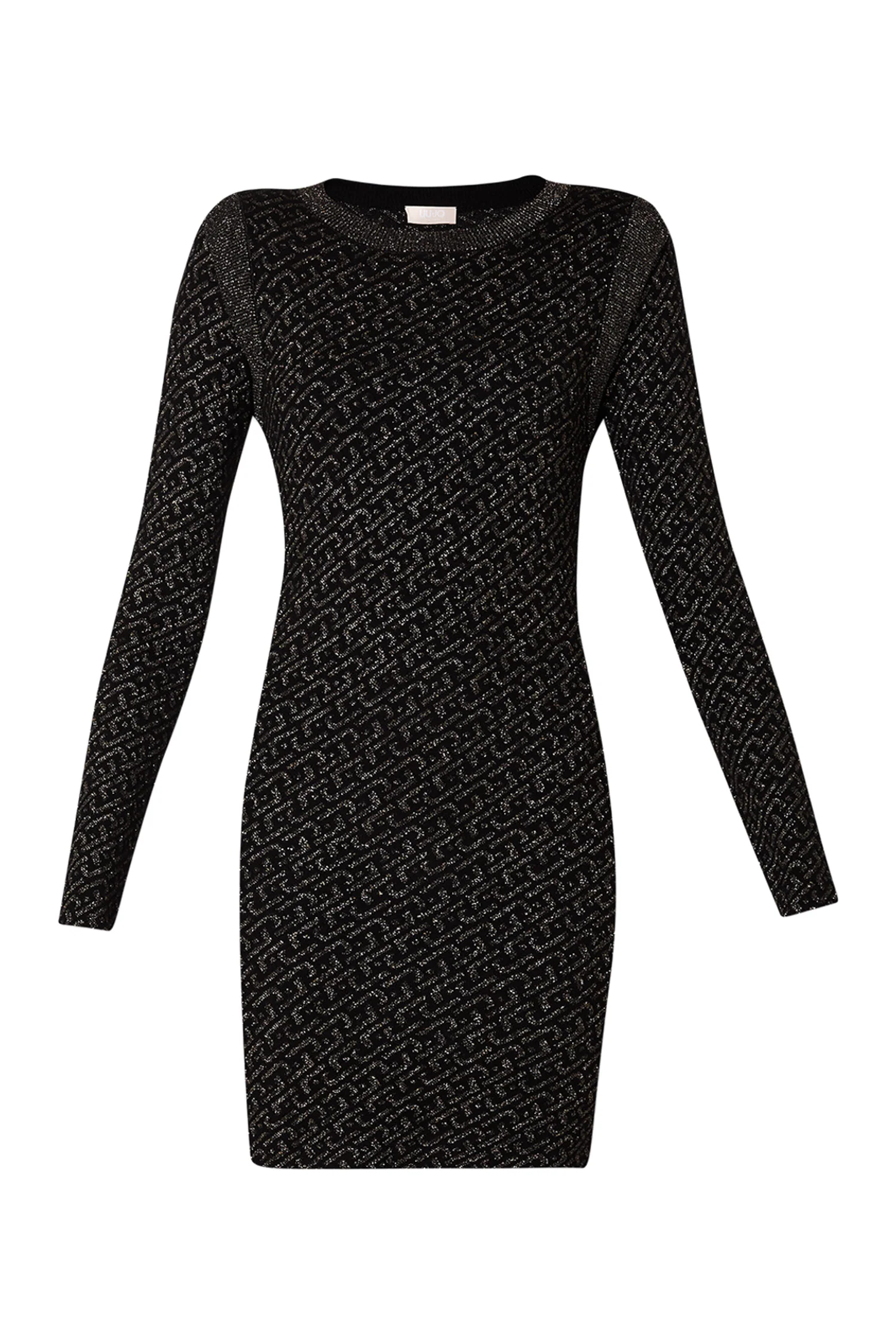 Vestito corto nero-oro in maglia con logo