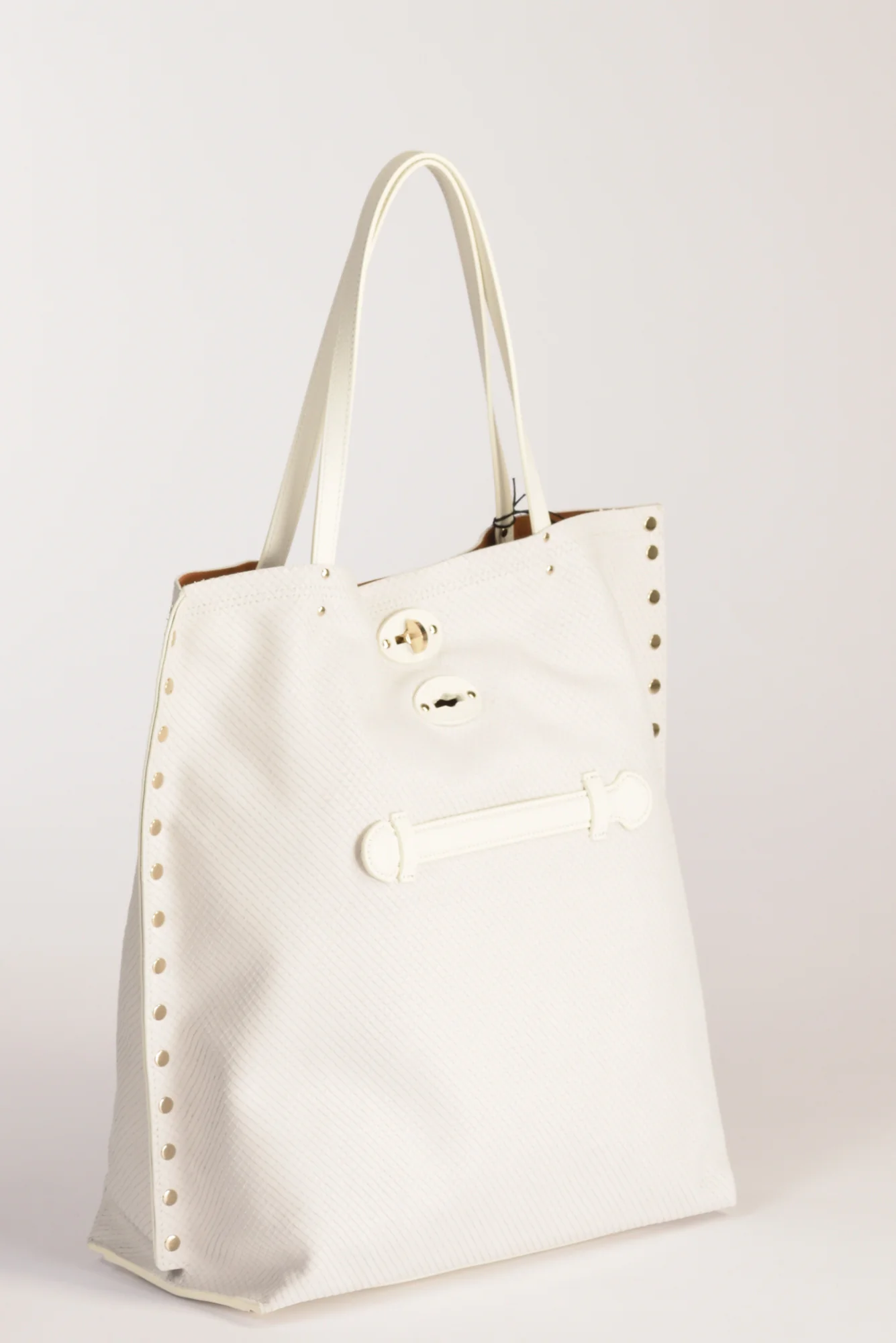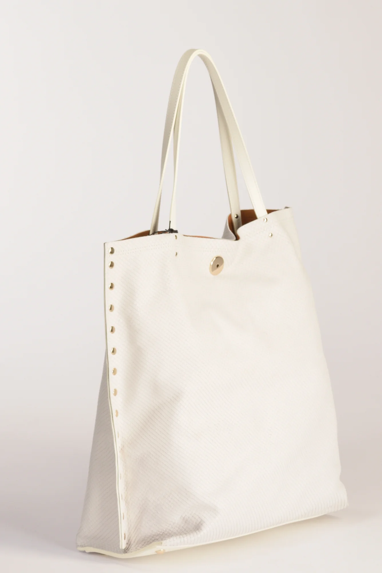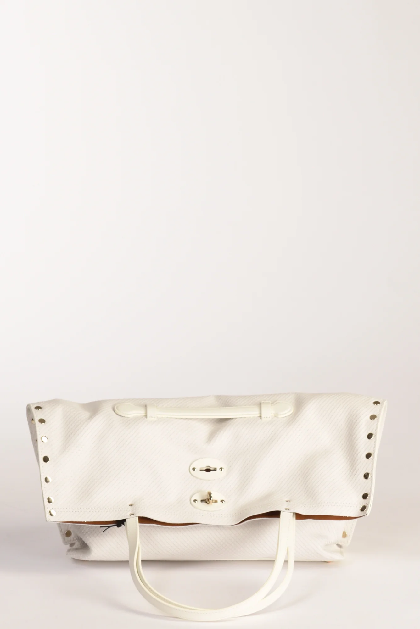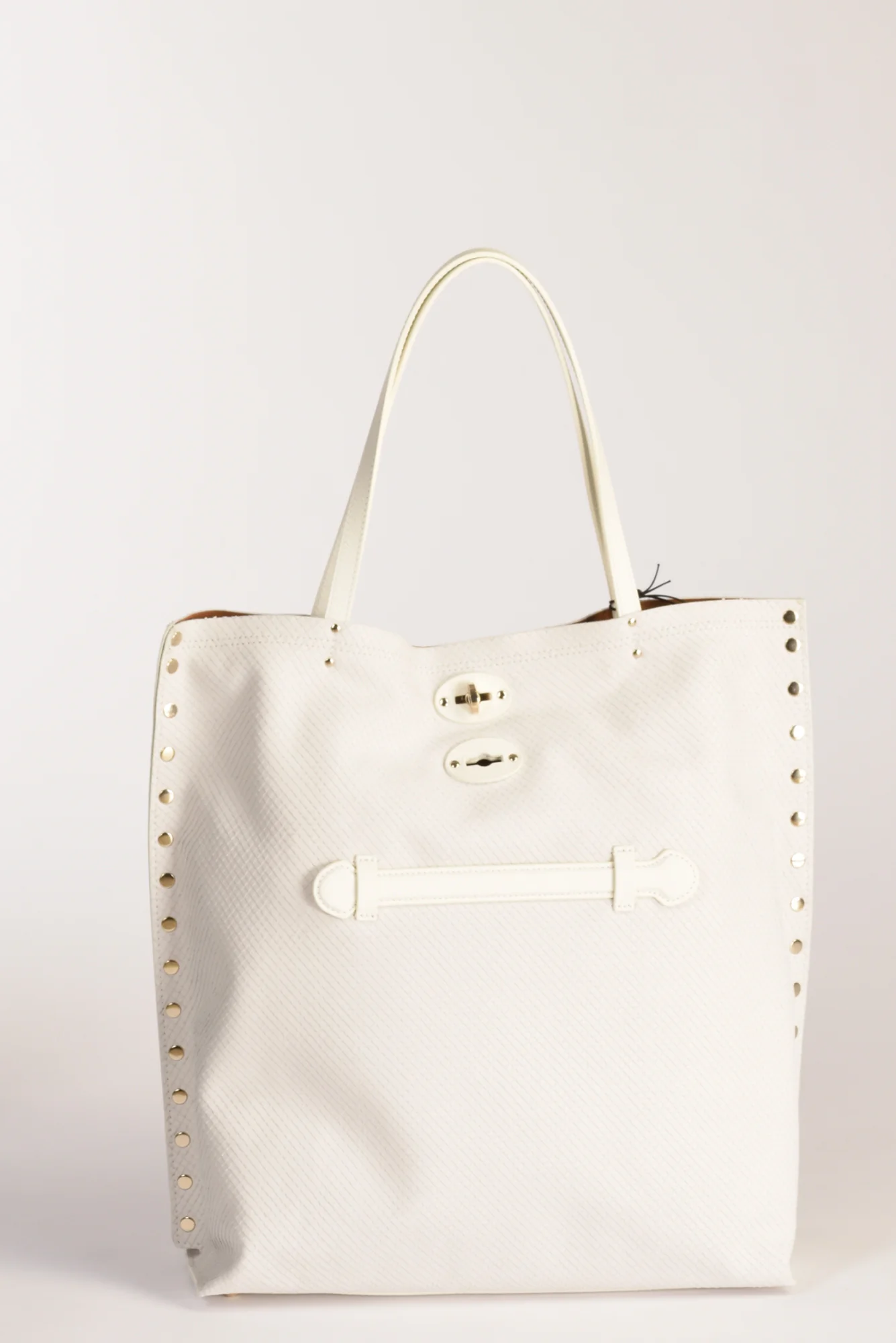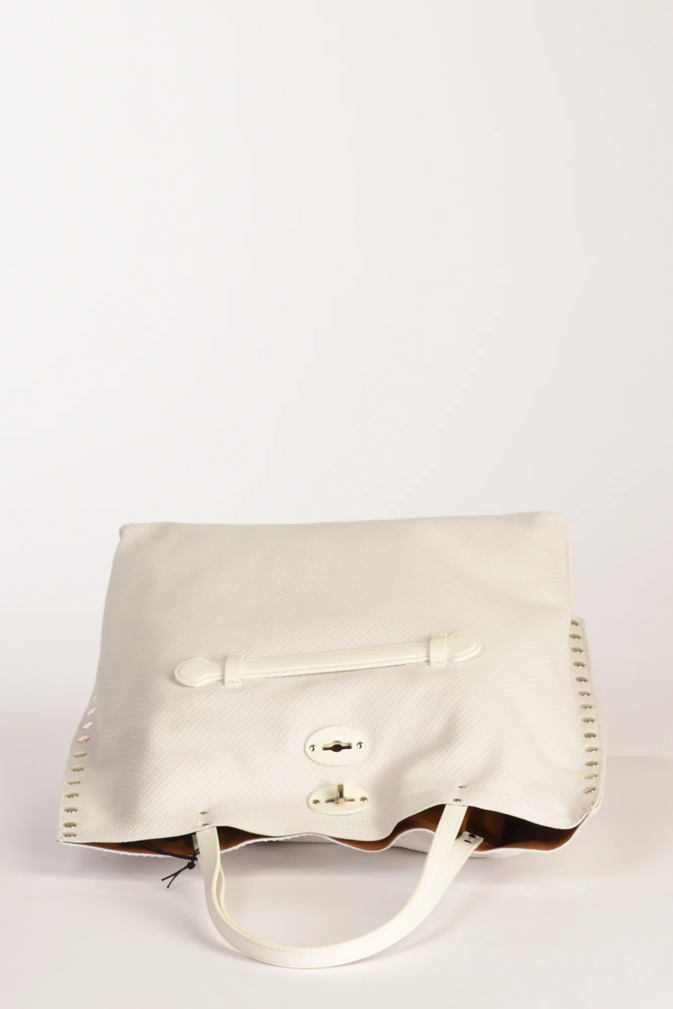 Borsa A Spalla Sfoderata, Fondo Semirigido Con Piedini, Borchie Laterali, Chiusa Da Iconico Girello, Dotata Di Tasca Interna Multiuso Chiusa Da Zip, Parte Frontale Decorata Da Fascietta In Pelle Fissa, Realizzata In Nappa Plonge’ E Lavorata Con Oli Di Lino,composizione 100 Pelle Bovina, Interno 100 Poliestere, Made In Romania