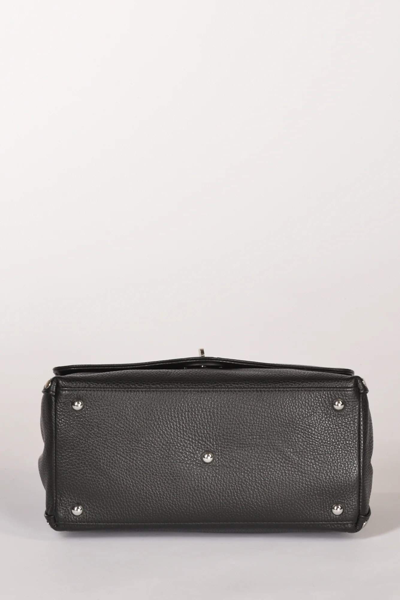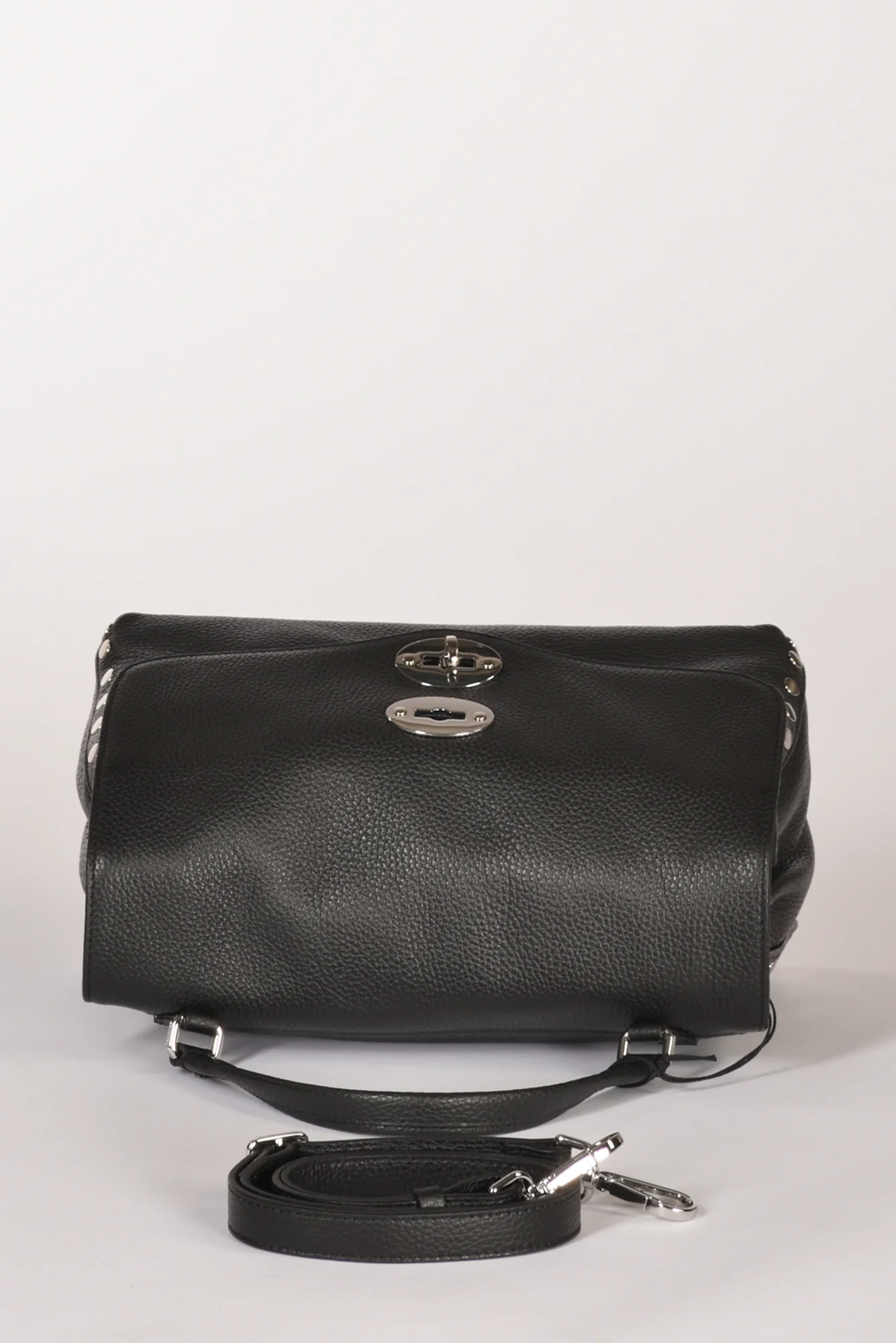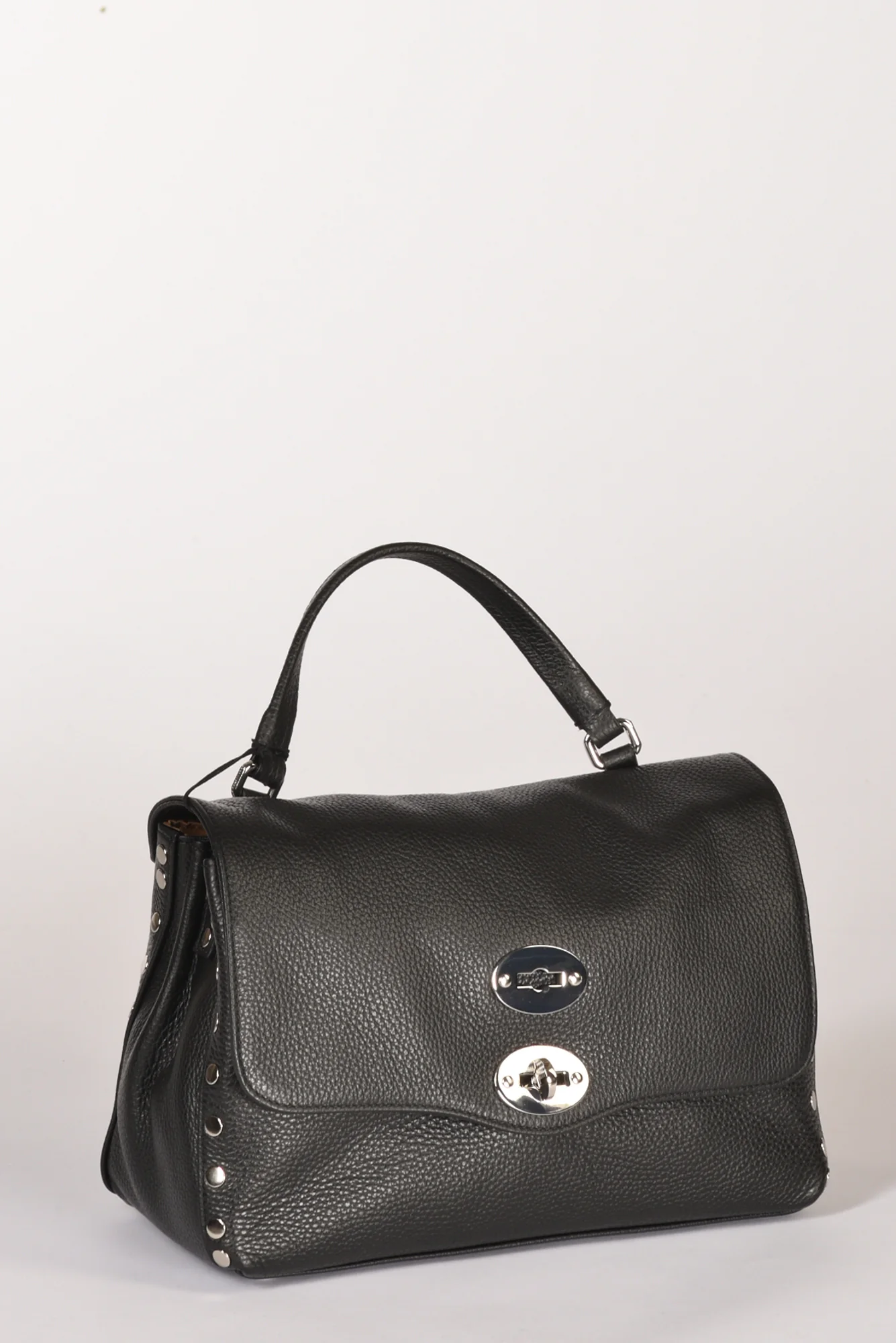 Borsa A Mano Modello Postina, Foderata, Chiusura A Girello Con Patta Battente, Tracolla Regolabile Ed Amovibile, Lavorazione Pelle Martellata, Internamente Presenta Due Tasche Multiuso Di Cui Una Zippata E Due Scomparti, Borchie Metalliche A Vista, Fondo Con Piedini, Composizione 100 Pelle Di Vitello, Made In Italy, Misure Cm 29x20x15, Luce Manico 7