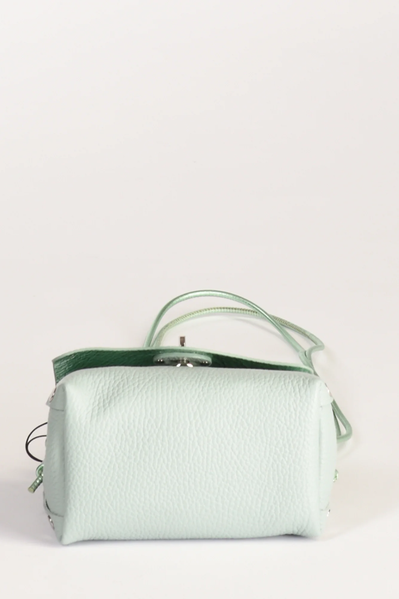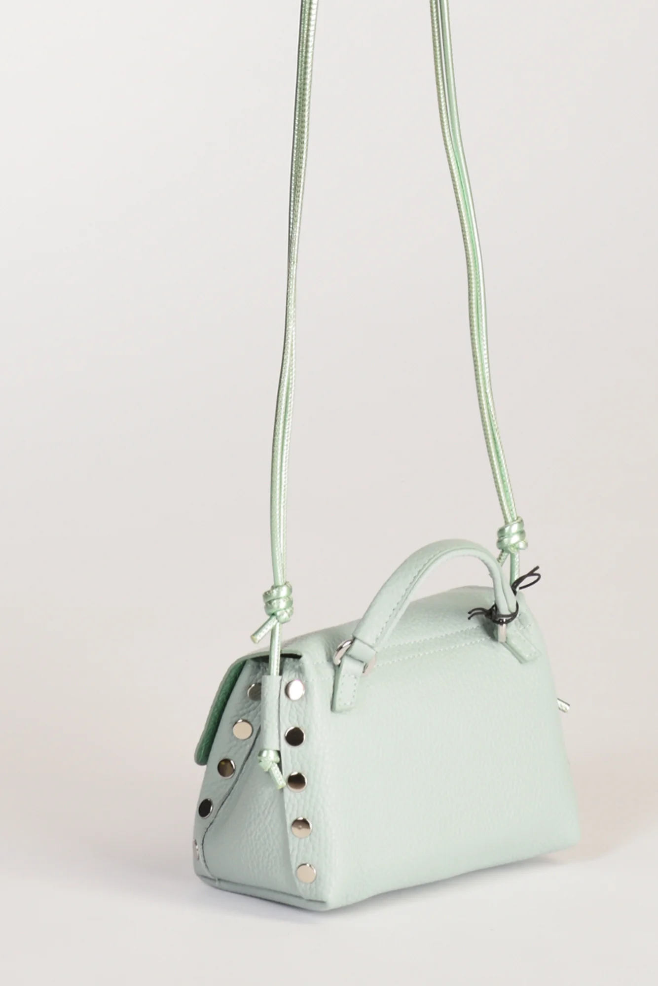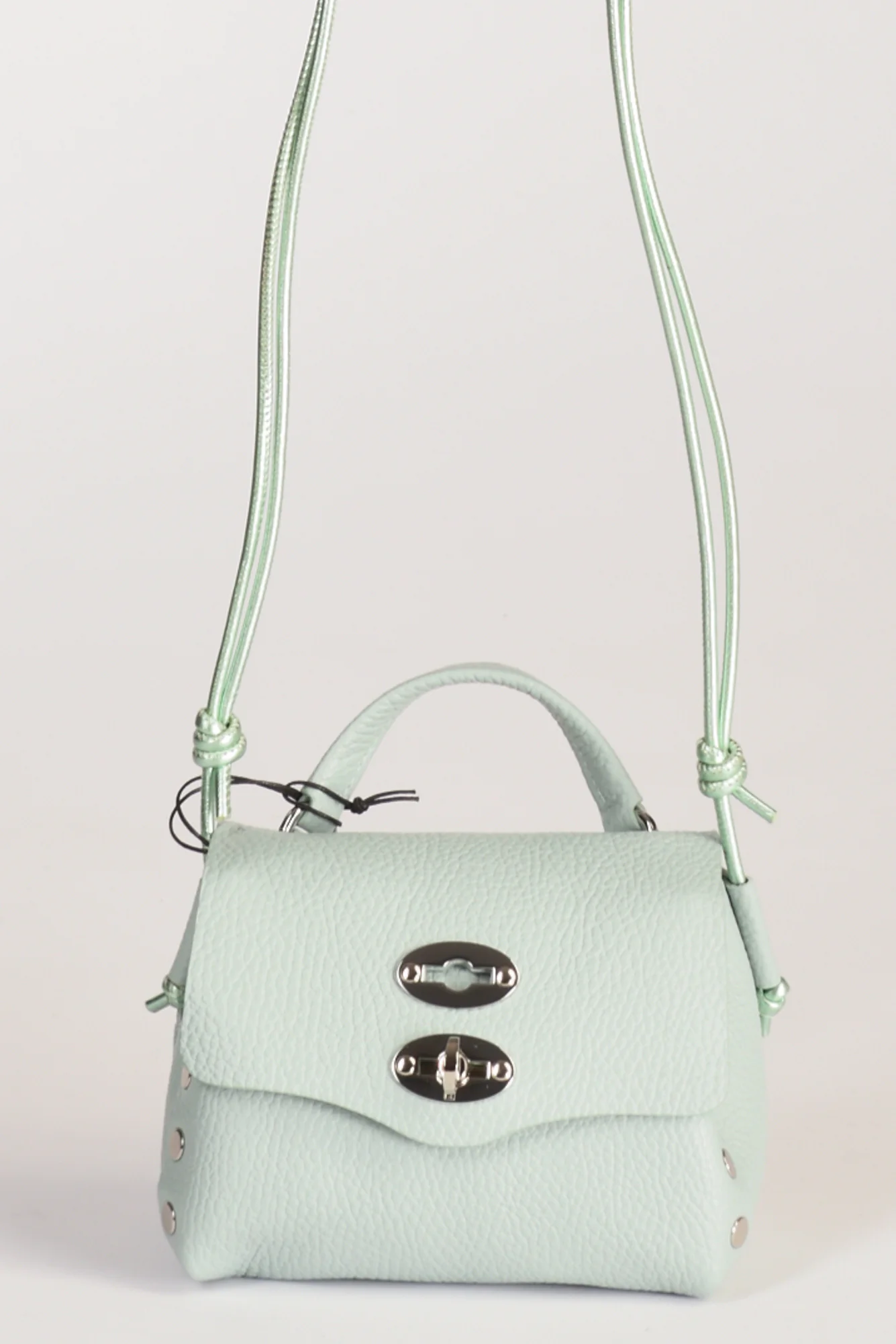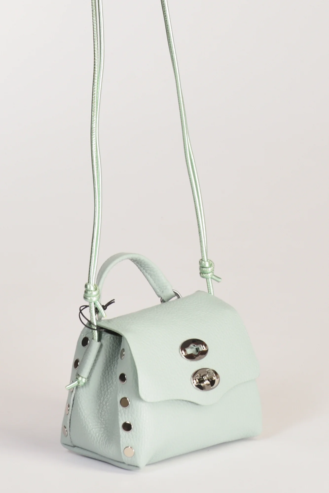 Borsa A Mano Modello Postina, Chiusura A Girello Con Patta Battente, Tracolla Fissa Regolabile, Lavorazione Pelle Martellata, Internamente Presenta Una Tasca Multiuso, Lateralmente Borchie Argentate A Vista, Fondo Senza Piedini,composizione 100 Pelle Bovina, Interno 100 Poliestere, Made In Italy, Misure Cm 16x10x10 Luce Tracolla 43 Cm, Luce Manico 5.